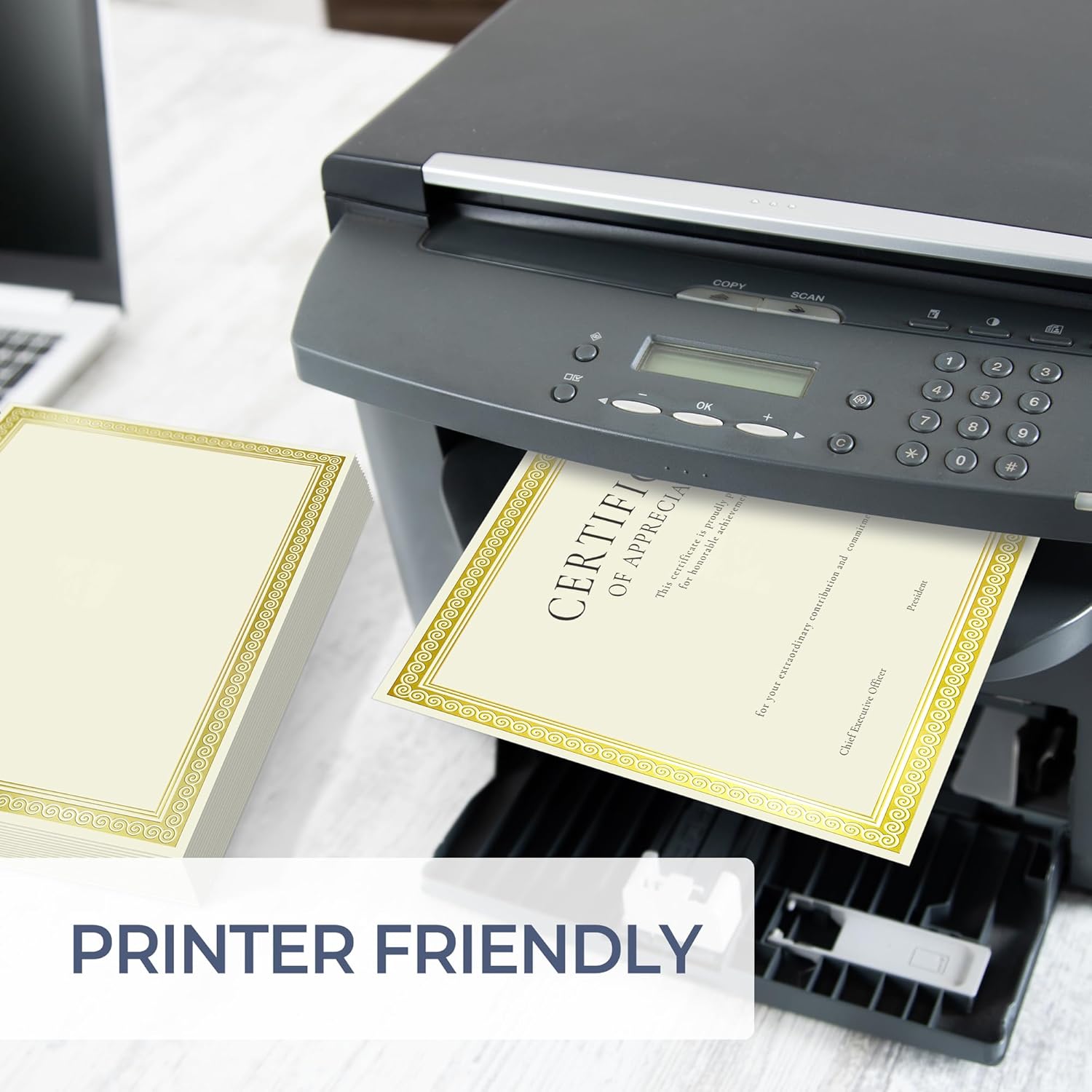 SUNEE 200 Sheets Certificate Papers - Blank Gold Foil Border, 8.5x11 for Diploma, Certificates, Participation Awards, Document Cardstock Paper and Inkjet Printer Friendly (Ivory)