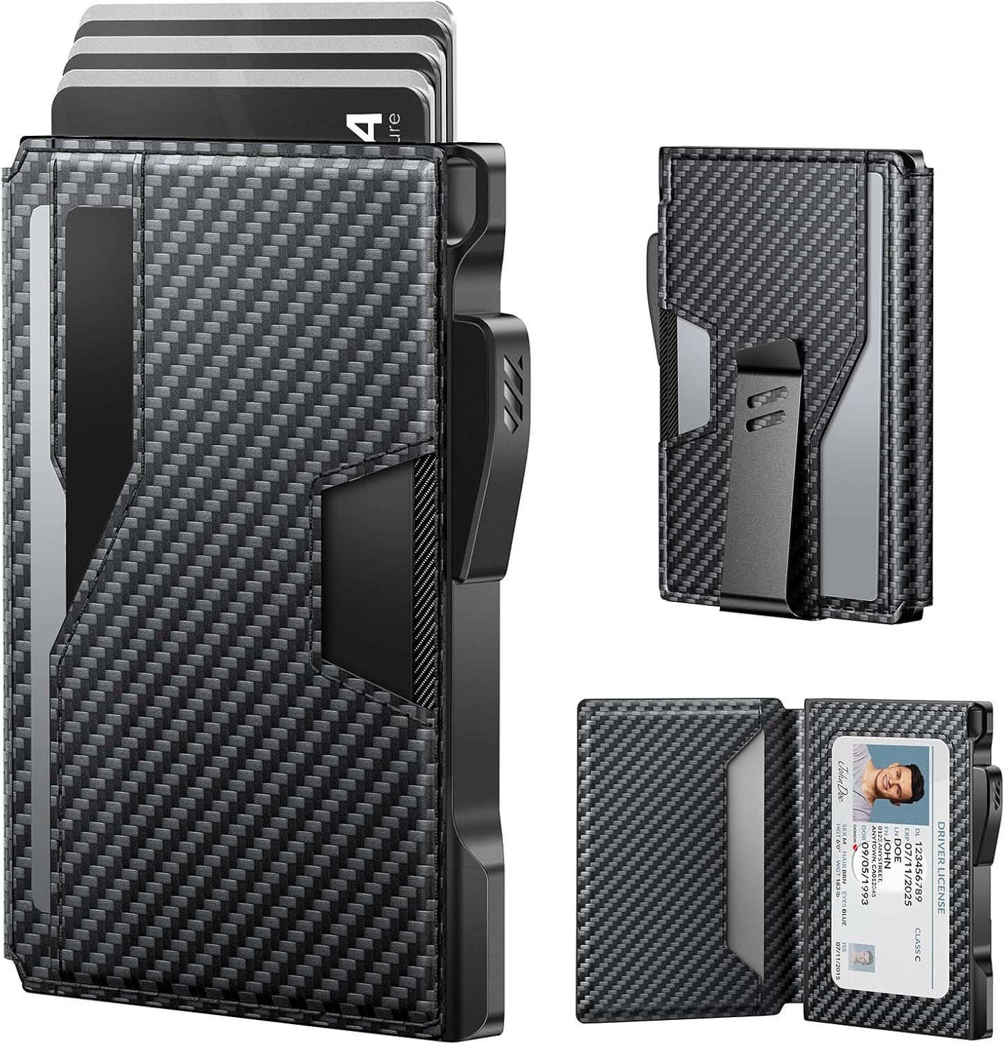 - Quick Card Access: Designed for speed, this wallet's smart pop up mechanism allows you to instantly view and select your cards. The front and back pocket provide 3 quick-release option for your frequently used card, ensuring they're always within reach.