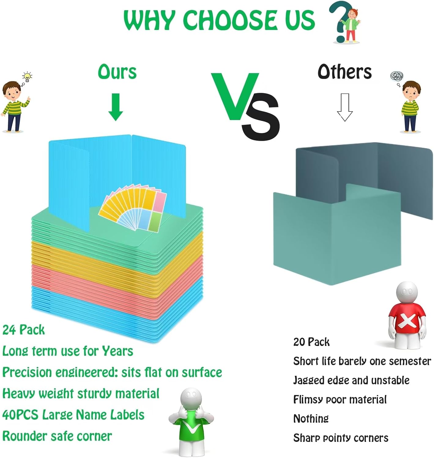 24 Pack Desk Privacy Panel Desk Divider - Pastel Colorful Testing Dividers for Classroom Supplies- Easy Clean Privacy Shields for Student Testing Desk dividers- Includes Extra Labels
