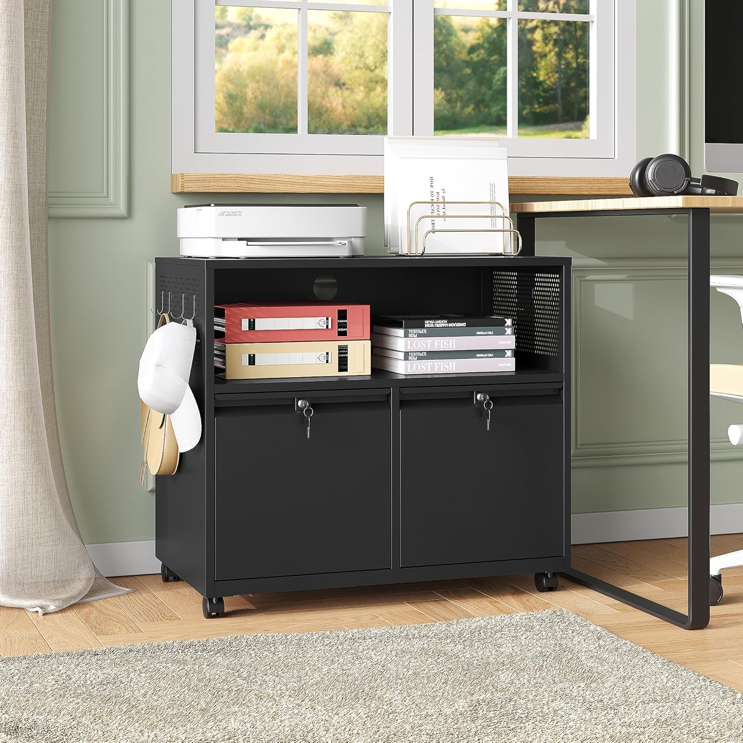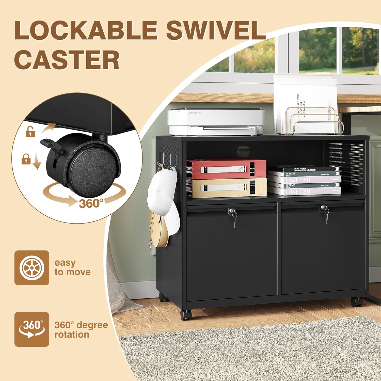 Mobile Filing Cabinet with Lock,Metal Lateral File cabinets Printer Stand with Storage Cabinets for Home Office,A4/F4/Letter (Black)