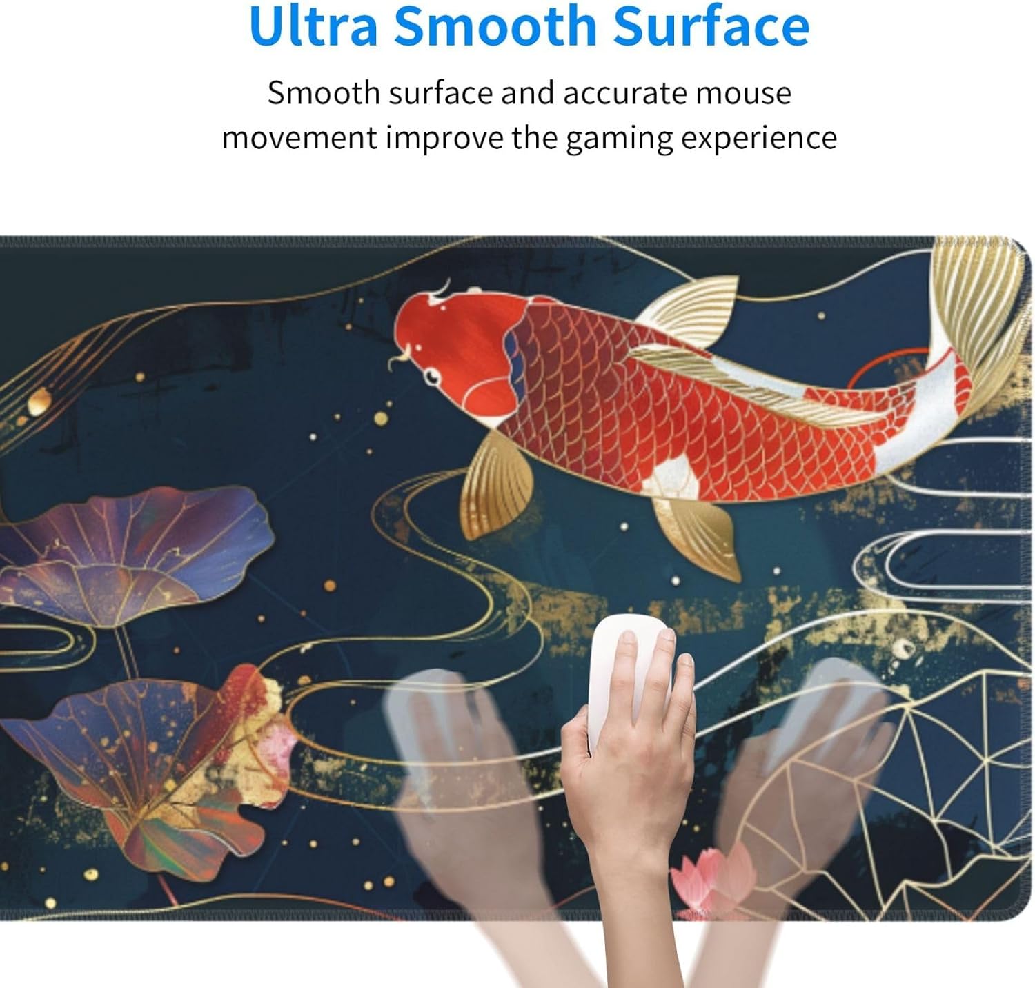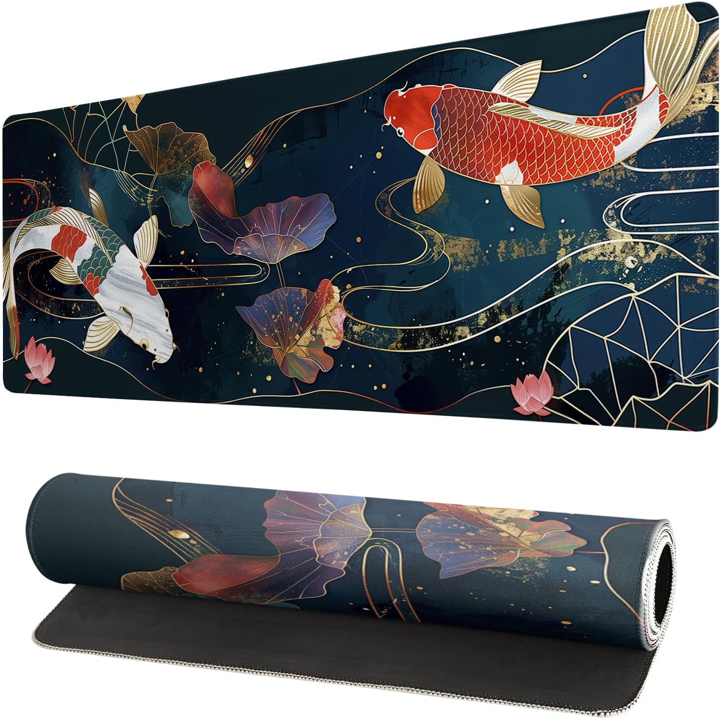 Gaming Mouse Pad Desk Pad,Extended Big Mouse Pad,31.5x11.8 Inch Long Computer Keyboard Mouse Mat Mousepad with 3mm Non-Slip Base and Stitched Edge for Gaming and Office… (koi)