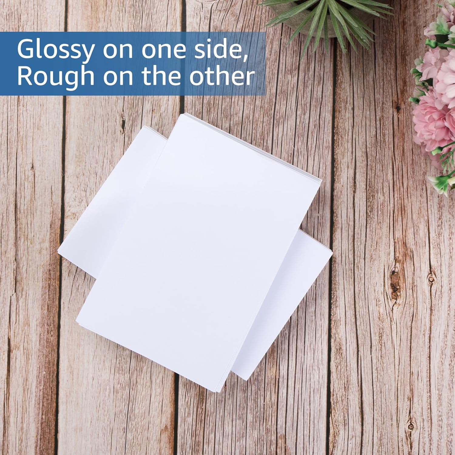 - GlOSSY PAPER: Single side of the printer paper has a glossy surface—reflective effect and scratch resistance.