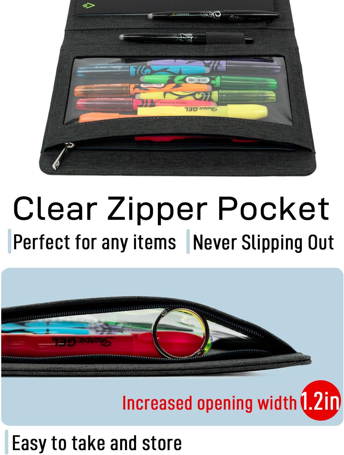 - The Newly Upgraded Zipper Pouch - The new design features a 50% wider zippered opening, providing even greater convenience for storing and accessing all your essentials, such as colored pencils, rulers, mini tablets, or even your favorite snacks!