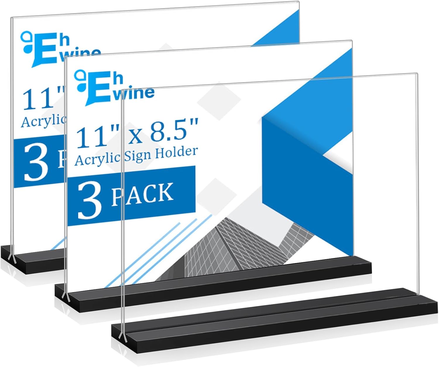 EHWINE 3 Pack Acrylic Sign Holder 8.5 x 11 Horizontal, Double-Sided Stand up Table Top Sign Holders, Clear Acrylic Picture Frame Menu Flyer Paper Holder Display Stand for Office Business Store Wedding Party(Black Base)