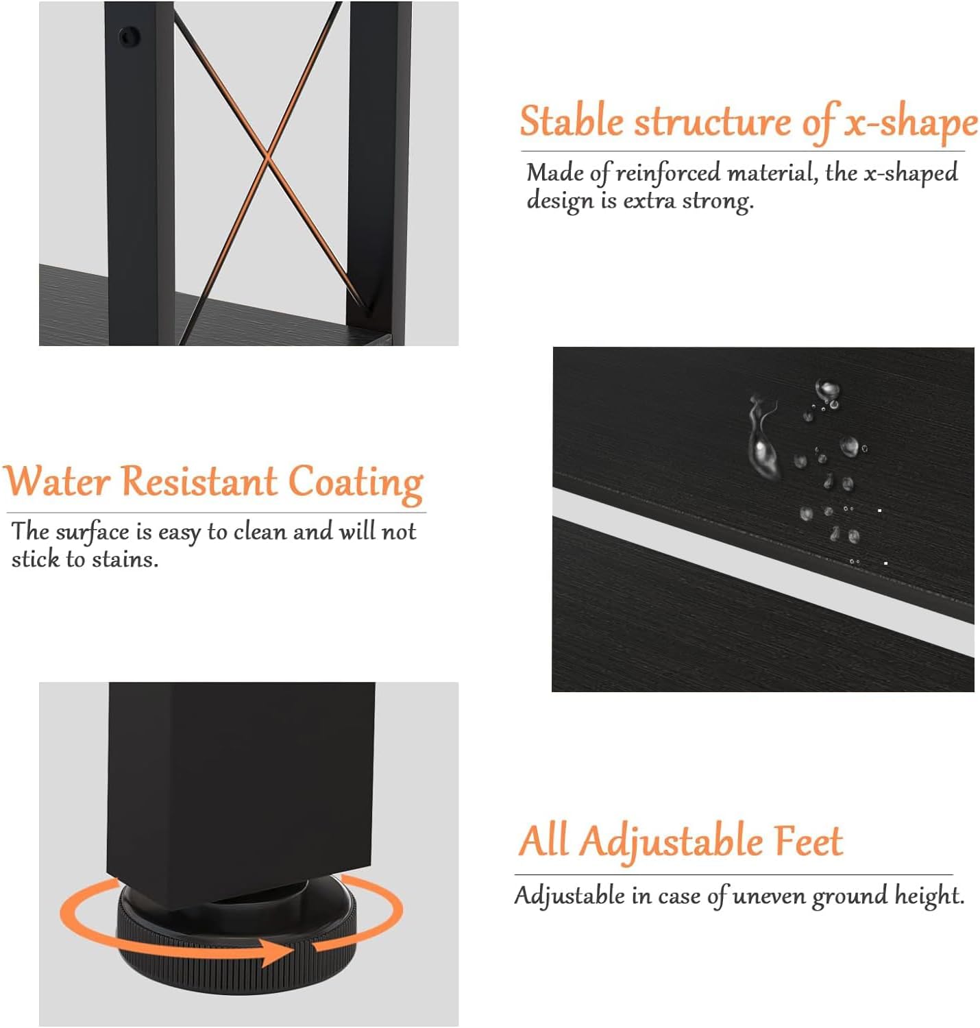 - STABLE AND STURDY: Crafted by thickened black metal frame and premium 0.59" engineered board, constructed with X cross design and adjustable feet, this book case is very stable and sturdy for long-lasting use.