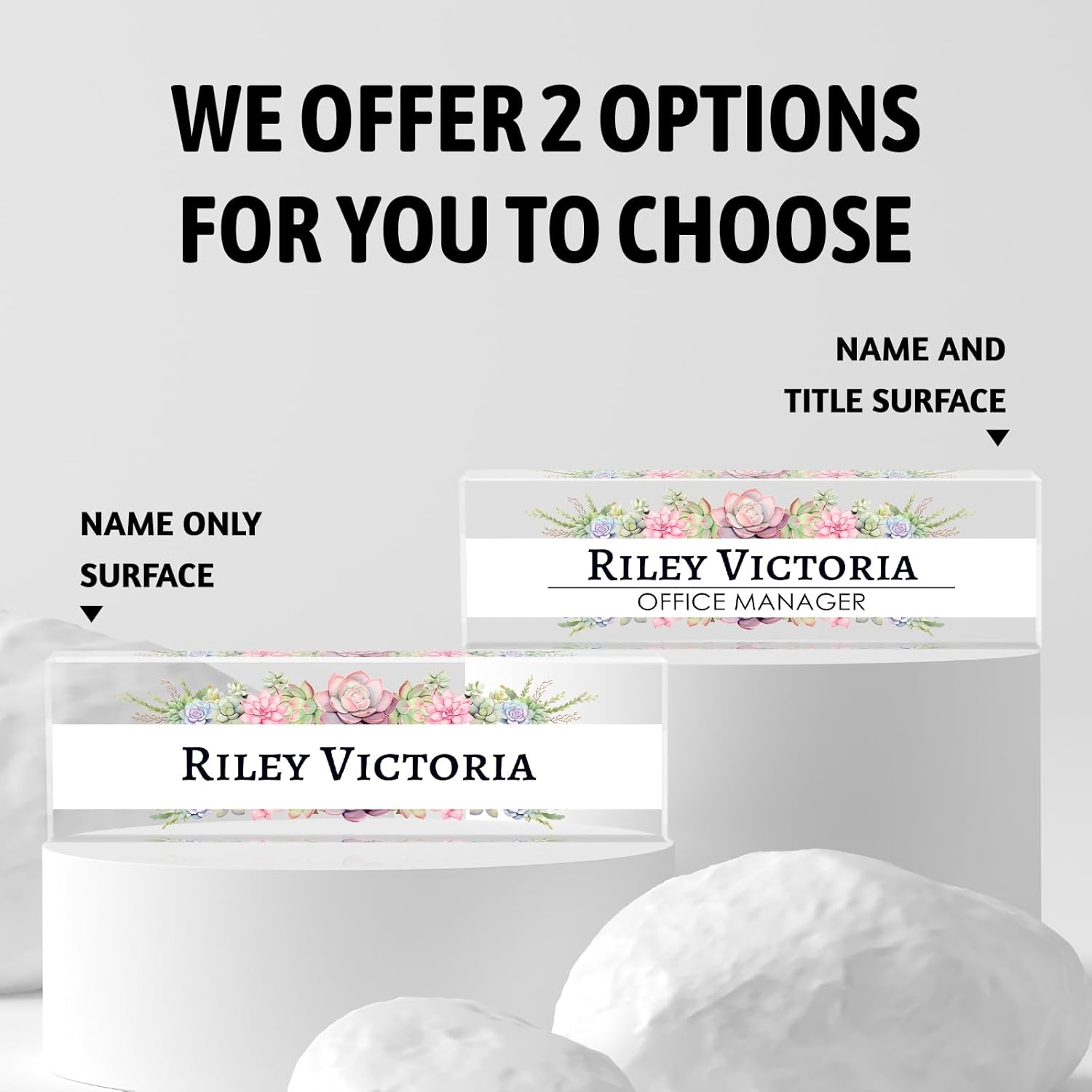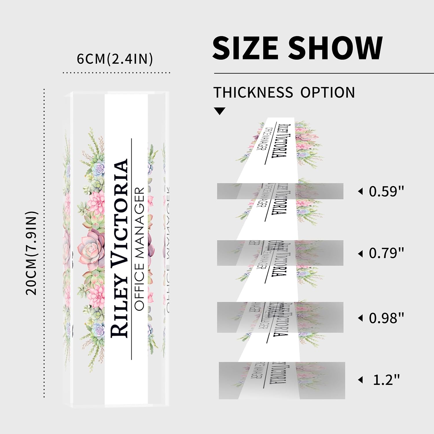 - 【Perfect Office Decor】Desk name plate personalized may be an indispensable item around you. It can be used as decoration for various occasions, such as offices, study rooms, conference rooms, classrooms. It also comes in 4 different sizes, suitable for different office scenarios, Clear 3D effects showcase your favorite fully designs and names, add an extra touch of elegance to your office.
