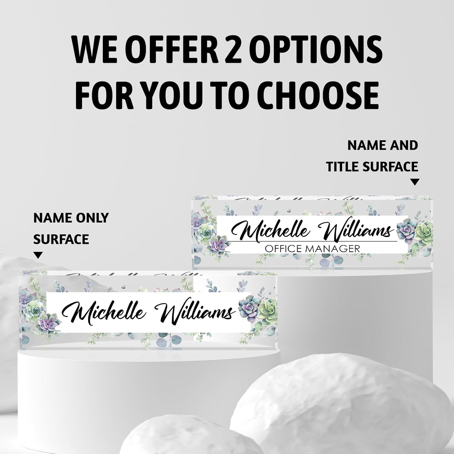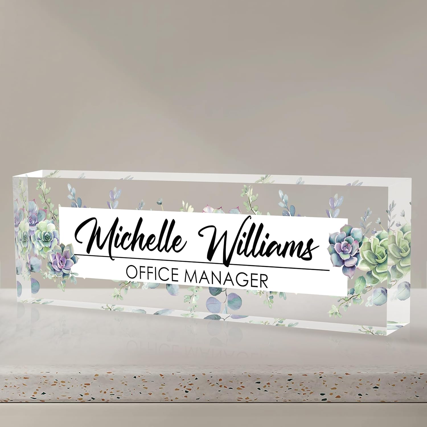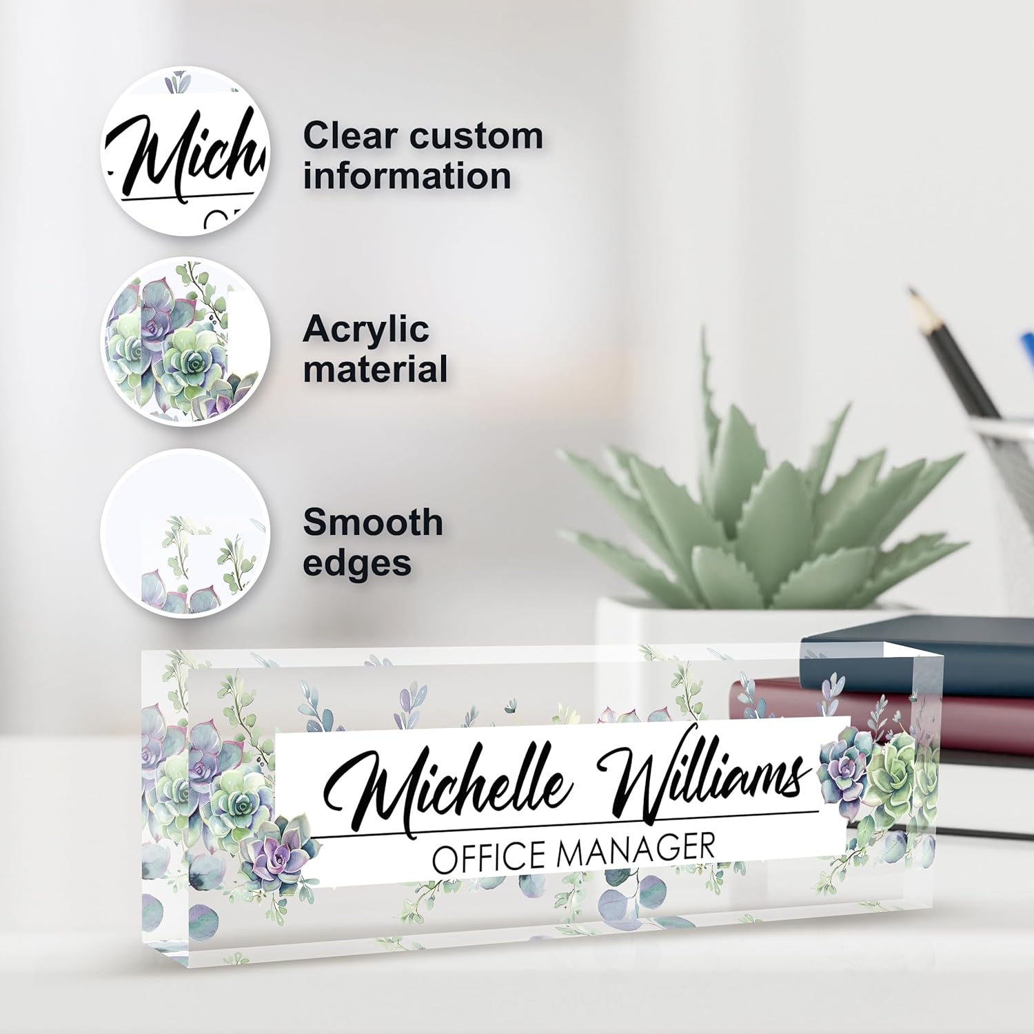 Personalized Name Plate for Desk, Custom Desk Name Plate, Acrylic Name Plate Office Desk Accessories, Personalized Office Gifts for Coworkers Teachers, Employee Appreciation Gifts (A-Never Wither)
