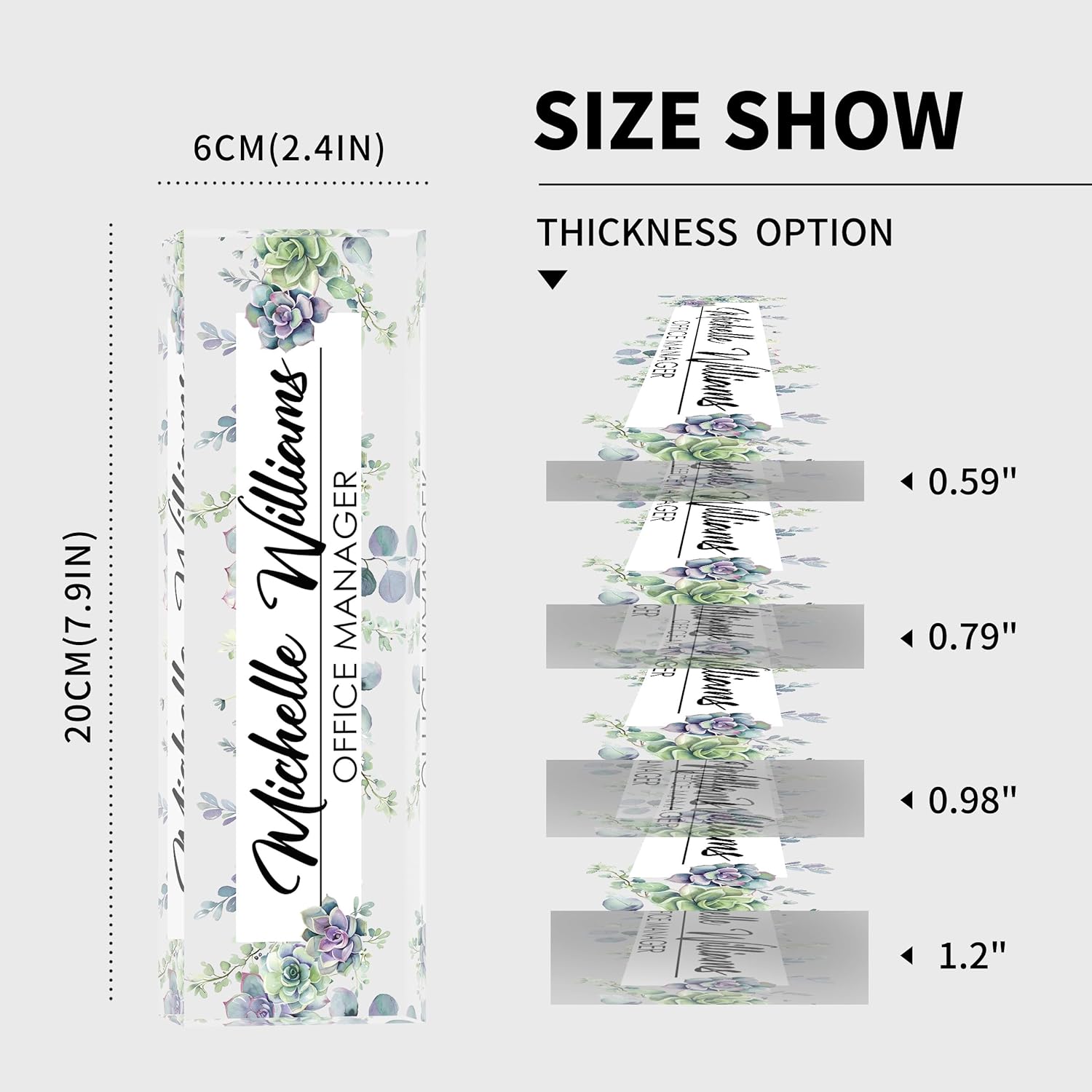 - 【Perfect Office Decor】Desk name plate personalized may be an indispensable item around you. It can be used as decoration for various occasions, such as offices, study rooms, conference rooms, classrooms. It also comes in 4 different sizes, suitable for different office scenarios, Clear 3D effects showcase your favorite fully designs and names, add an extra touch of elegance to your office.