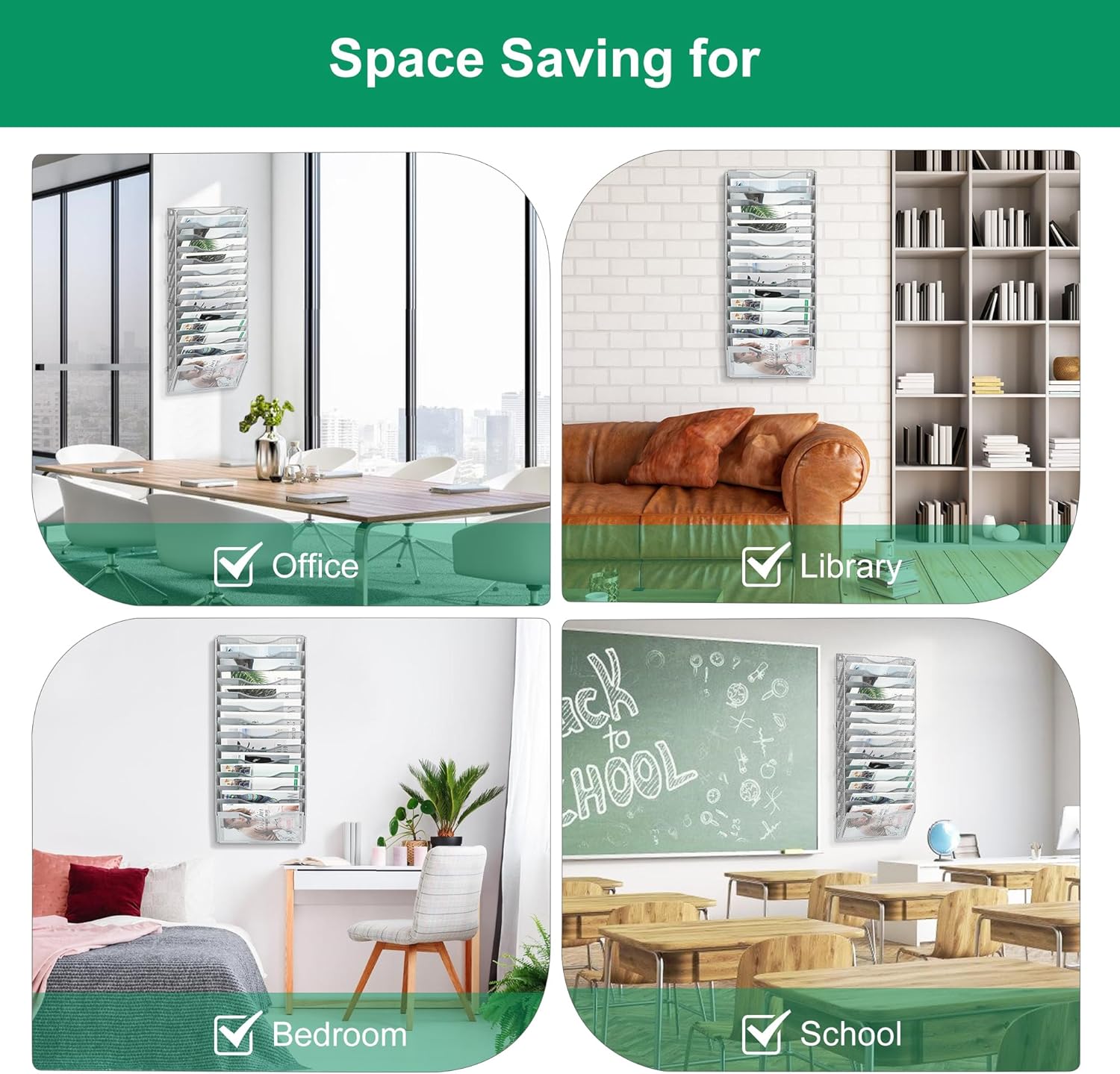 - Multipurpose Pockets Organizer: Use in the office to store files, magazines, A4 papers, bills, clipboard, letters and etc, it also can fit in kids' rooms to hang cartoon books, comics, and teach books, for school to help teacher organizer desk stationary supplies