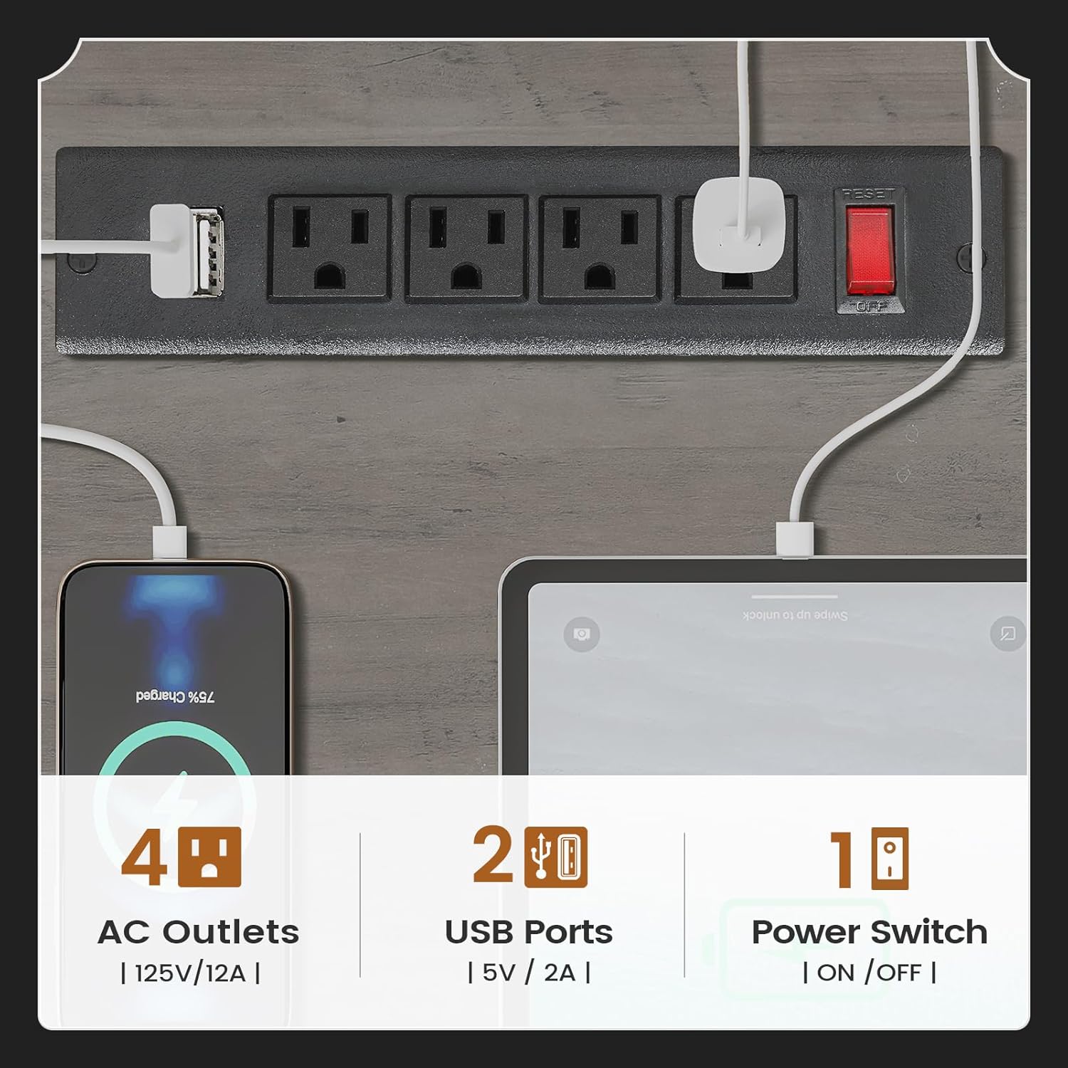 - ăPower OutletsăThis computer desk is equipped with 4 AC outlets, 2 USB charging ports to provides convenience for charging your gaming gear, tablet, printer or phone. The switch is convenient and safe to turn off power, no need to unplug appliances at all times.