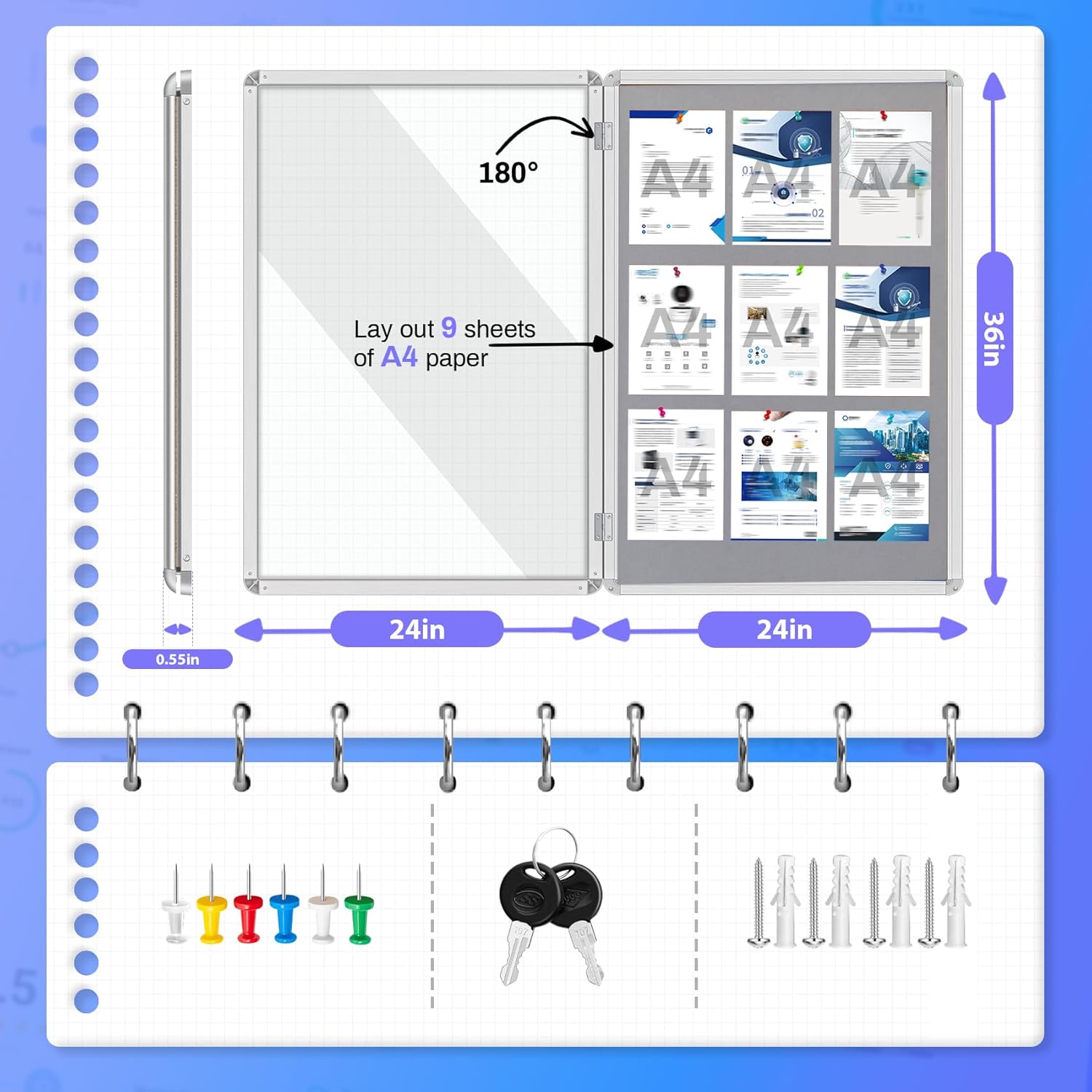 - 【SECURE AND PROTECTED NOTICE BOARD】Enclosed bulletin board keep important information safe from the elements, theft, or tampering with lockable acrylic doors and key mechanisms.Save valuable wall space and maintain a clean and organized appearance in offices, schools, or community centers.