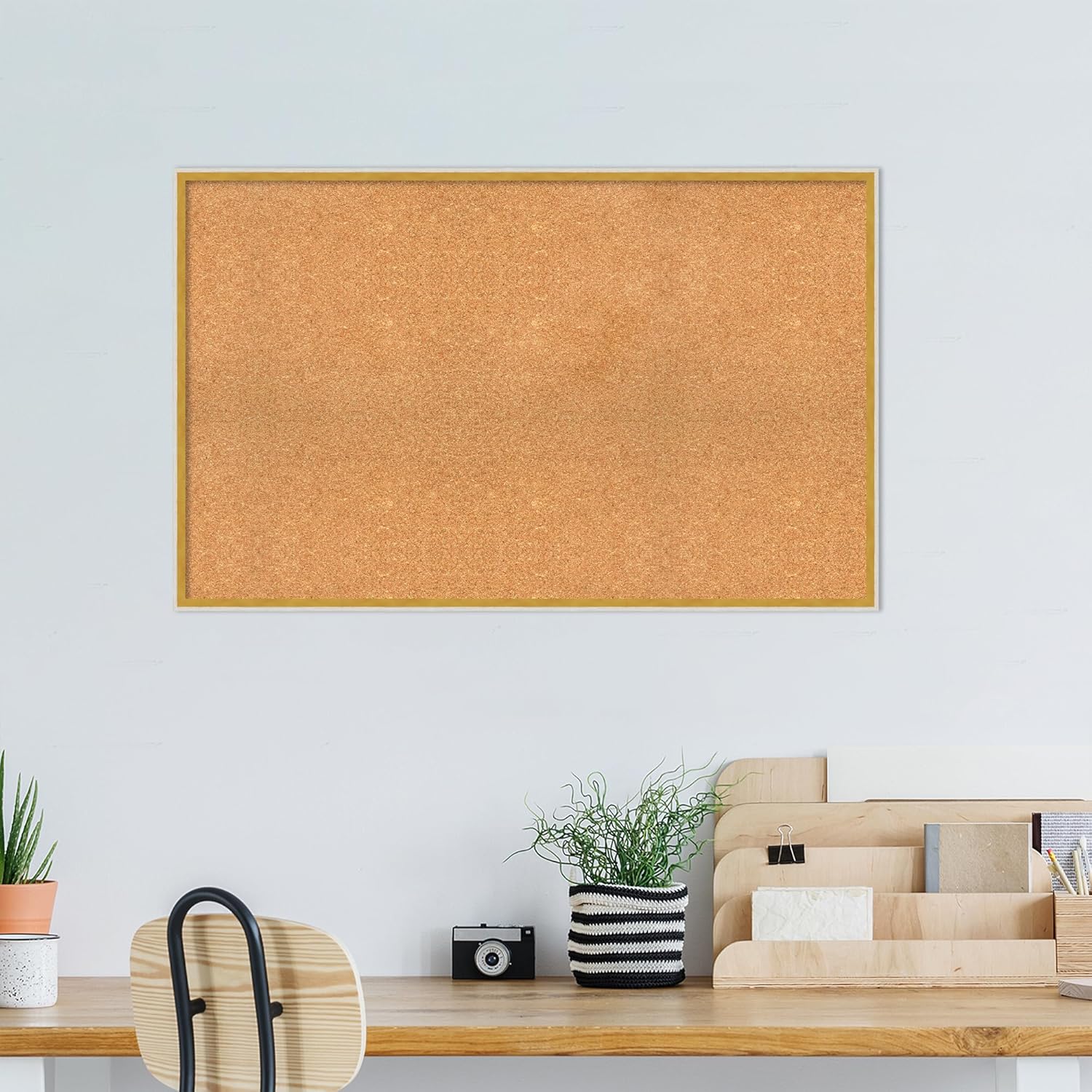 Amanti Art Natural Cork Board for Wall, 27x43 Vision Board with White Frame, Oversize Corkboard Office Decor for Home Organization, Modern Corkboard Pinboard to Display Items for Home Organization in