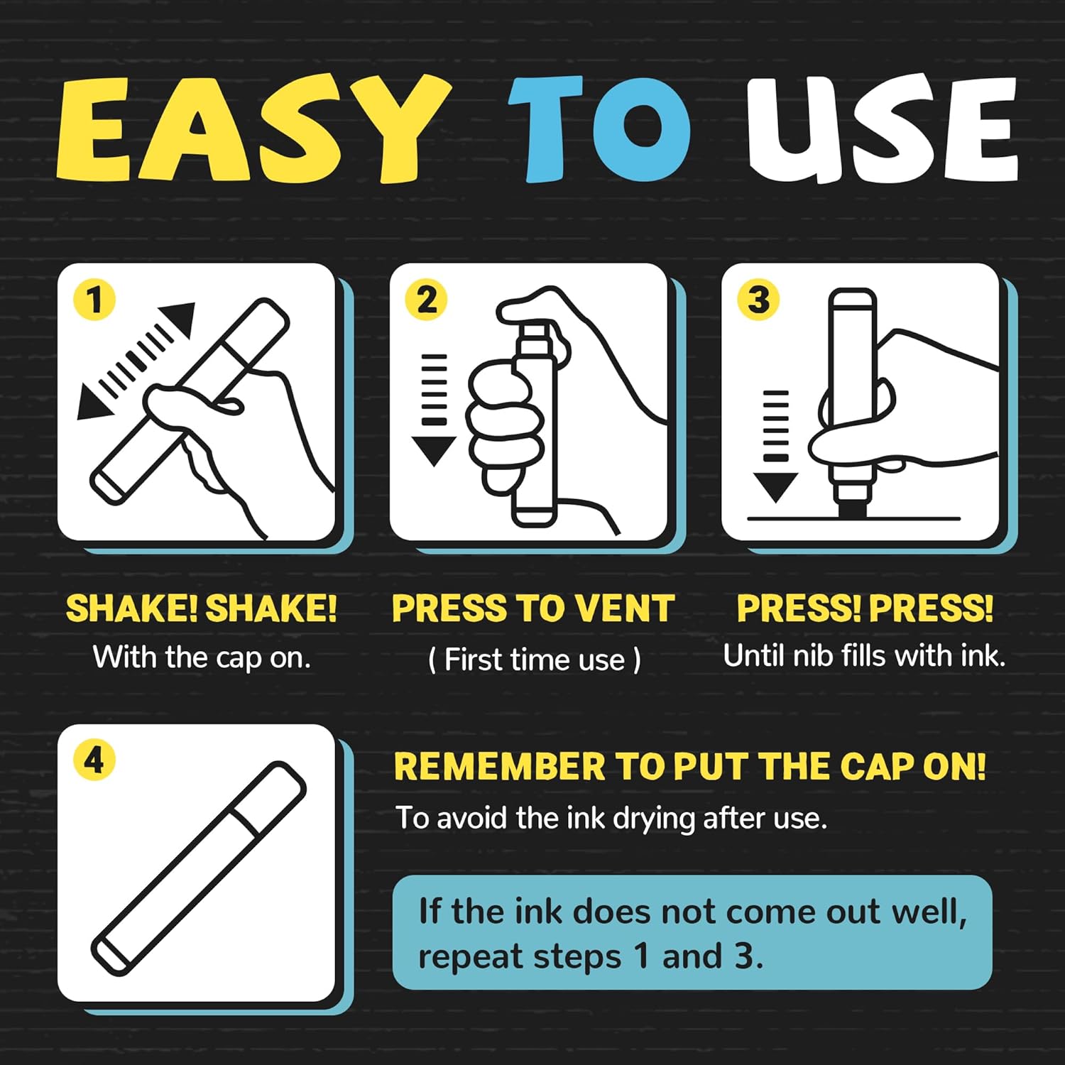 - Easy to Erase: Our chalkboard markers are dust-free, which makes cleanup of these erasable markers a breeze! They can be easily erased from smooth surfaces with a damp cloth