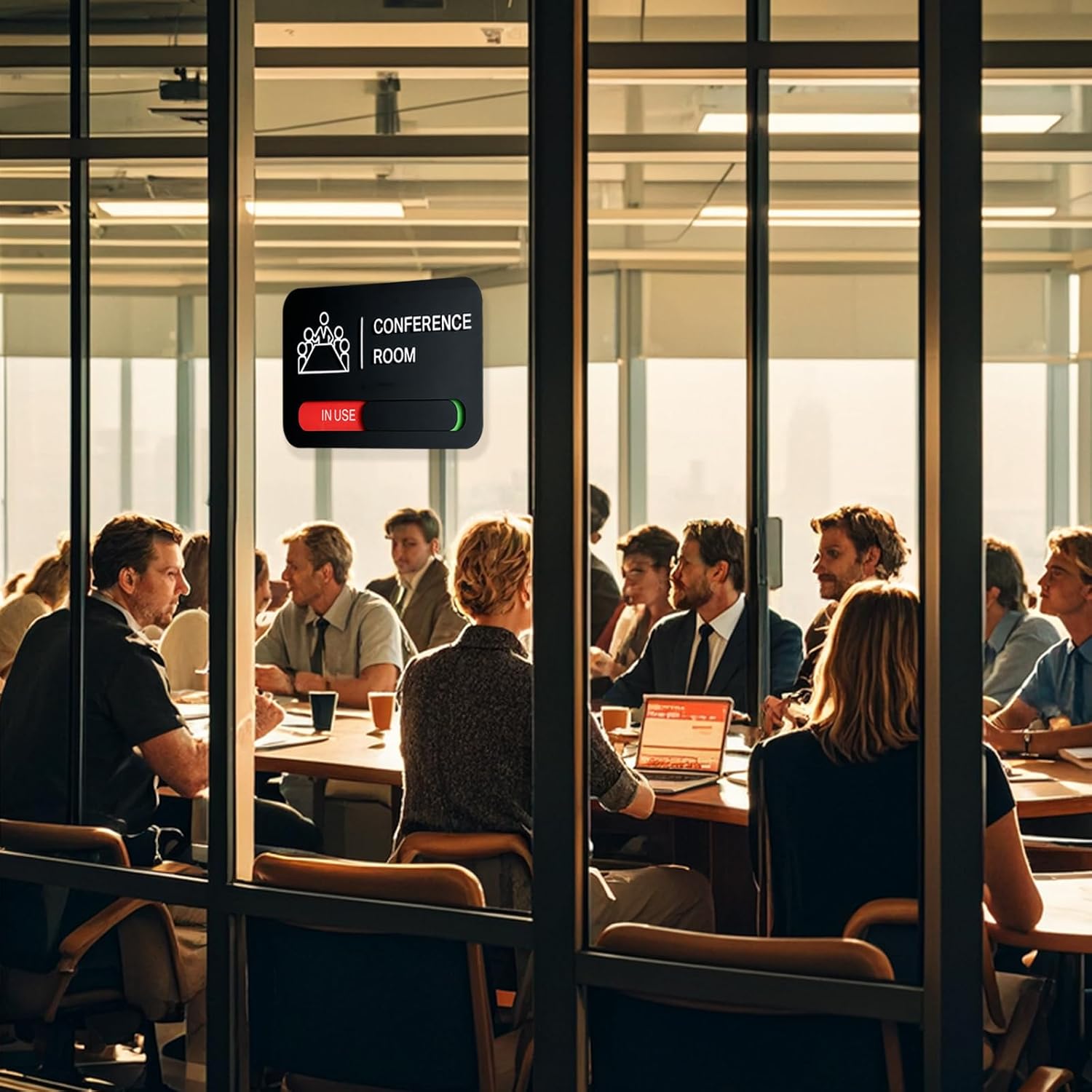 Acrylic Office Meeting Room Door Sign, 8.8 x 5.1 inches.Conference Room Signs, In use/Available Office Sign Black, Minimalist Style