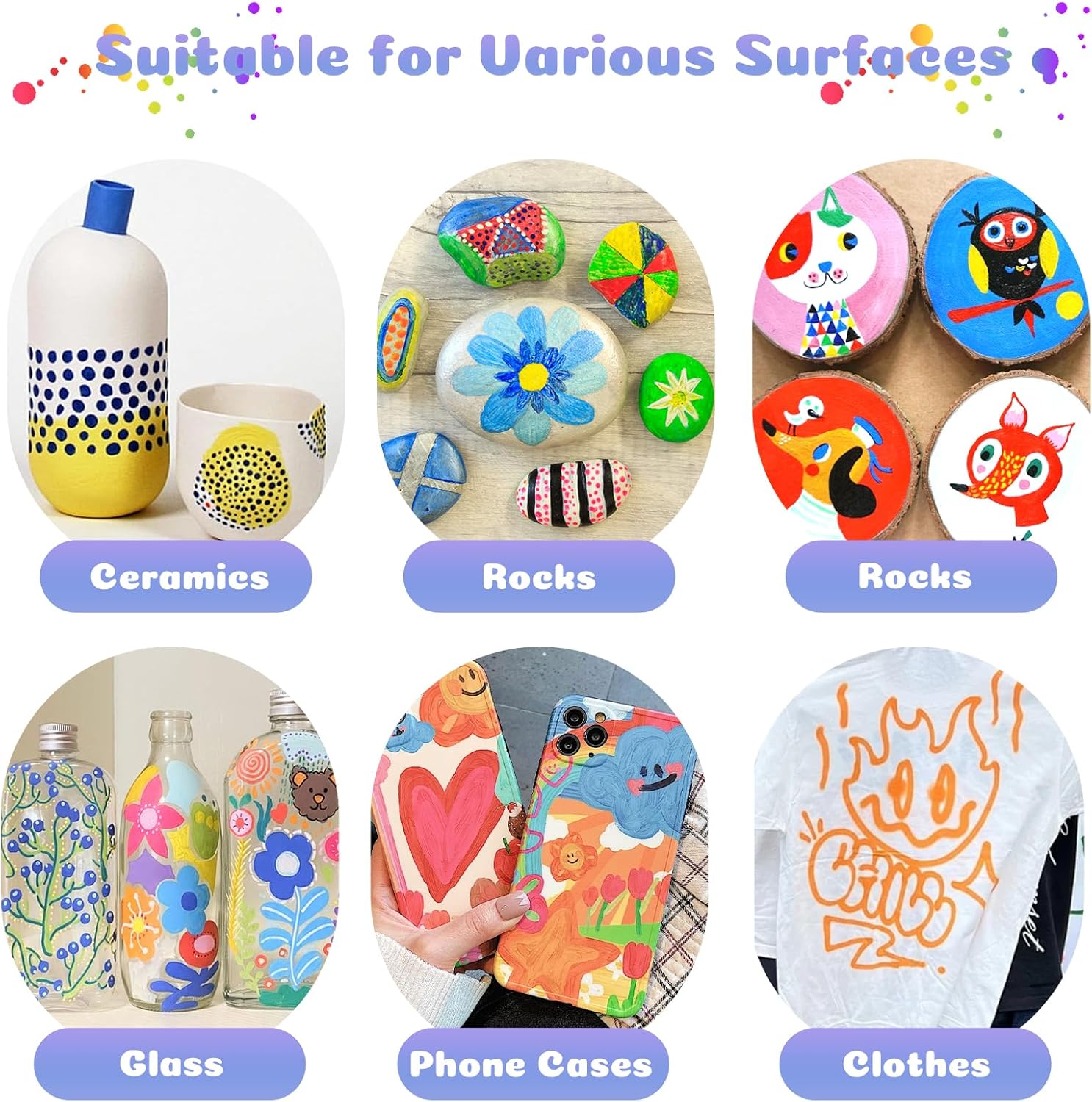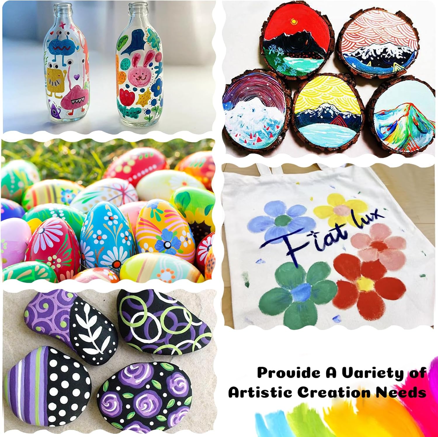 - 【Premium & Safe】 Acrylic paint marker pens does not need to shake the pen and press the pen head to release ink, but can be used to paint directly after getting the acrylic marker pen, smooth writing permanent paint. Acrylic paint 100% non-toxic, acid-free, xylene-free, quick-drying, tasteless, anti-fading, environmentally friendly. For best results, reseal the acrylic paint pens immediately after use and store them horizontally.