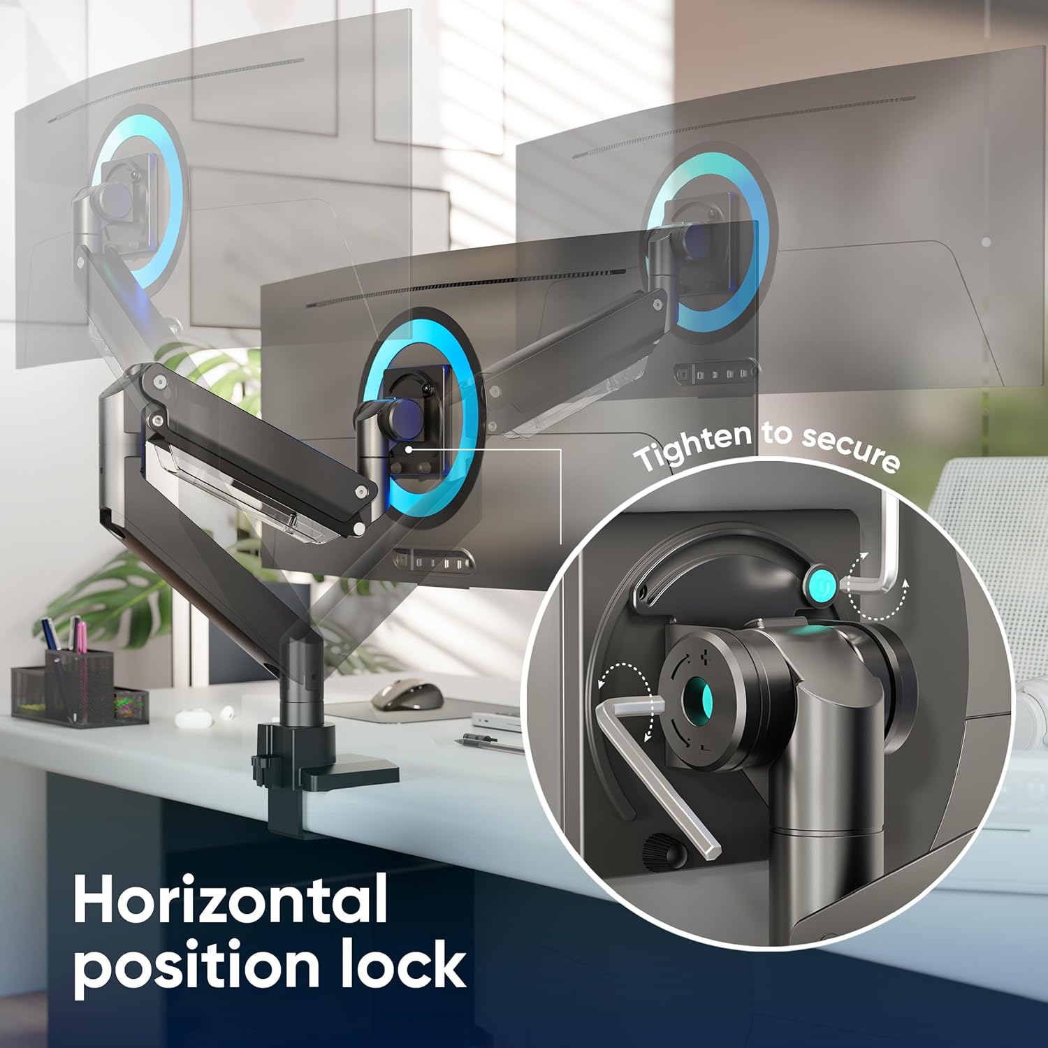 ONKRON Heavy Duty Monitor Arm for 17-57 Inch Screen up to 59.4 lbs, Ultrawide Monitor Mount with Gas Spring, VESA 75x75-200x200, Single Arm Screen Mount for Desk Swivel, Tilt, Rotation Black