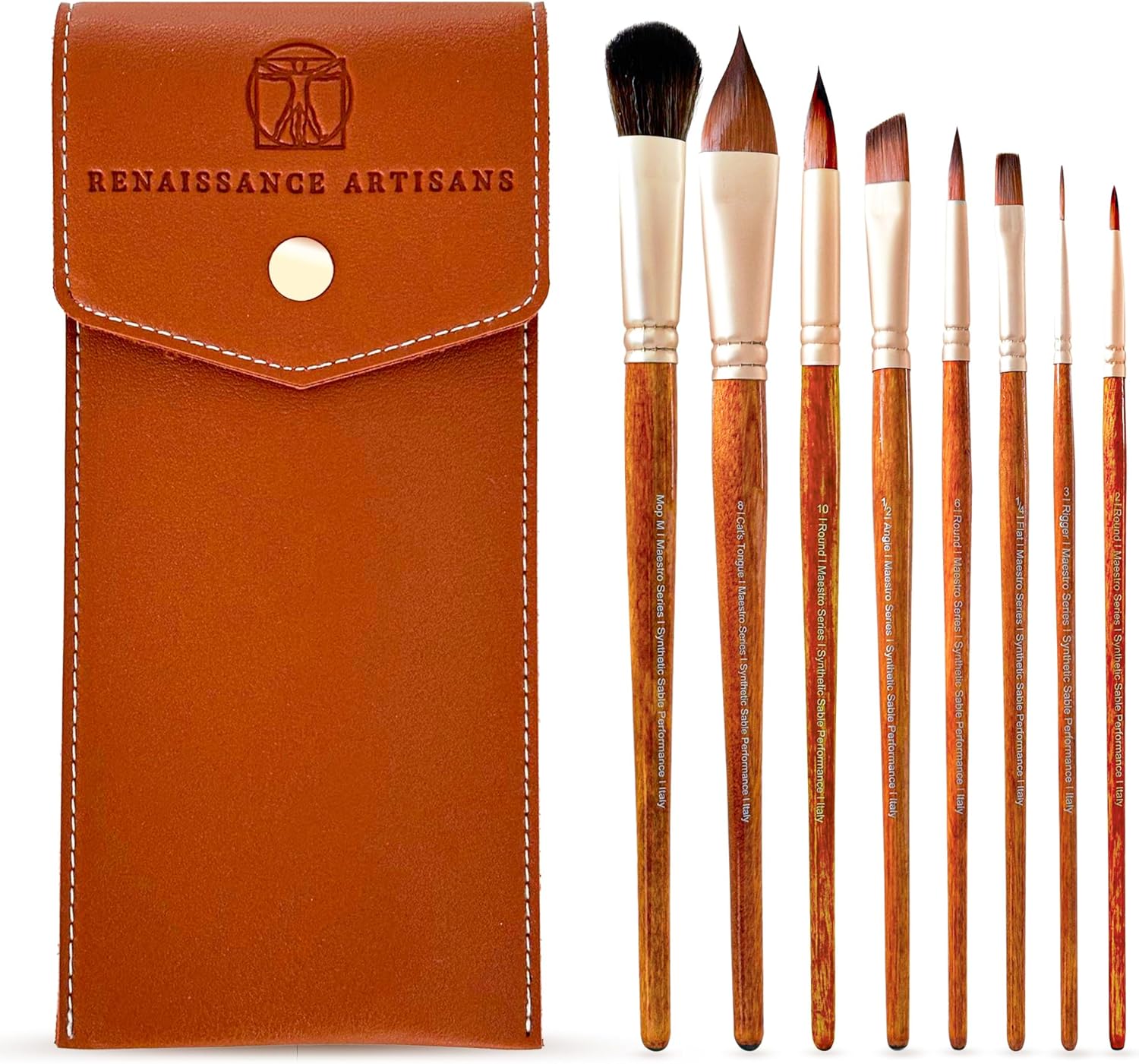 Maestro Series - Sable Watercolor Brushes 8Pcs Kolinsky Sable Performance Brush Set, Outstanding Color Flow, Durable Performance & Precision Shape Retention