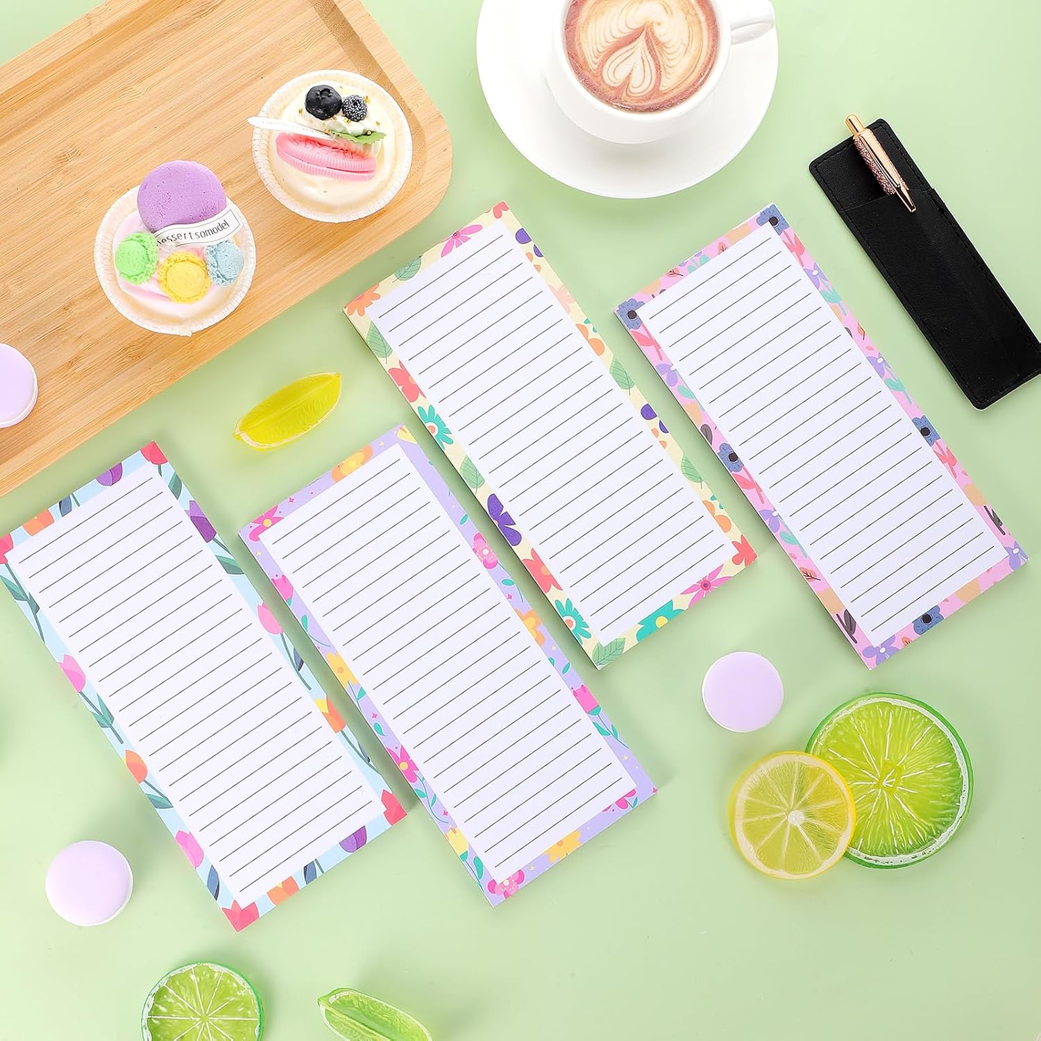 4 Pack Magnetic Note Pad for Fridge with Pen Holder, Totally 200 Sheets Grocery List Magnet Pad for Refrigerator Magnetic Shopping List Pad(Floral Design)