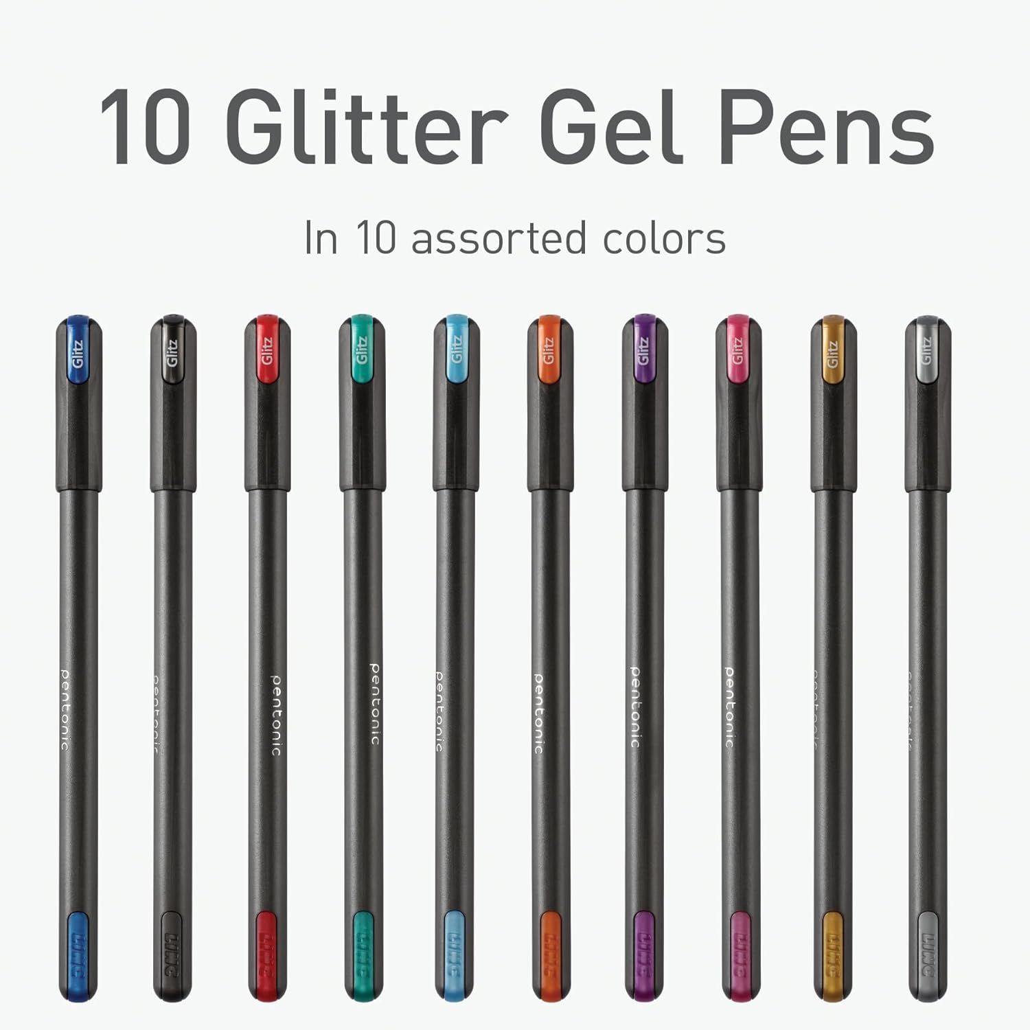 Pentonic Glitter Gel Pens, 10 Count, 10 Assorted Colors, 1.0 mm Bold Point, Smooth Writing For Journaling, Notetaking & Art Projects (1002365)