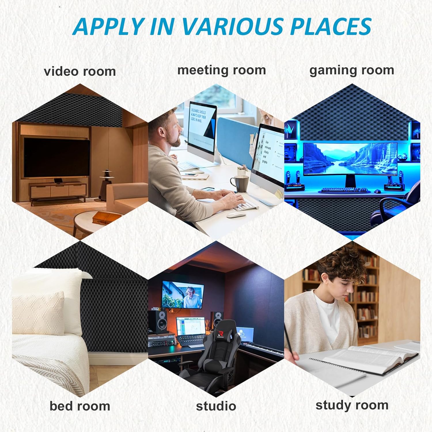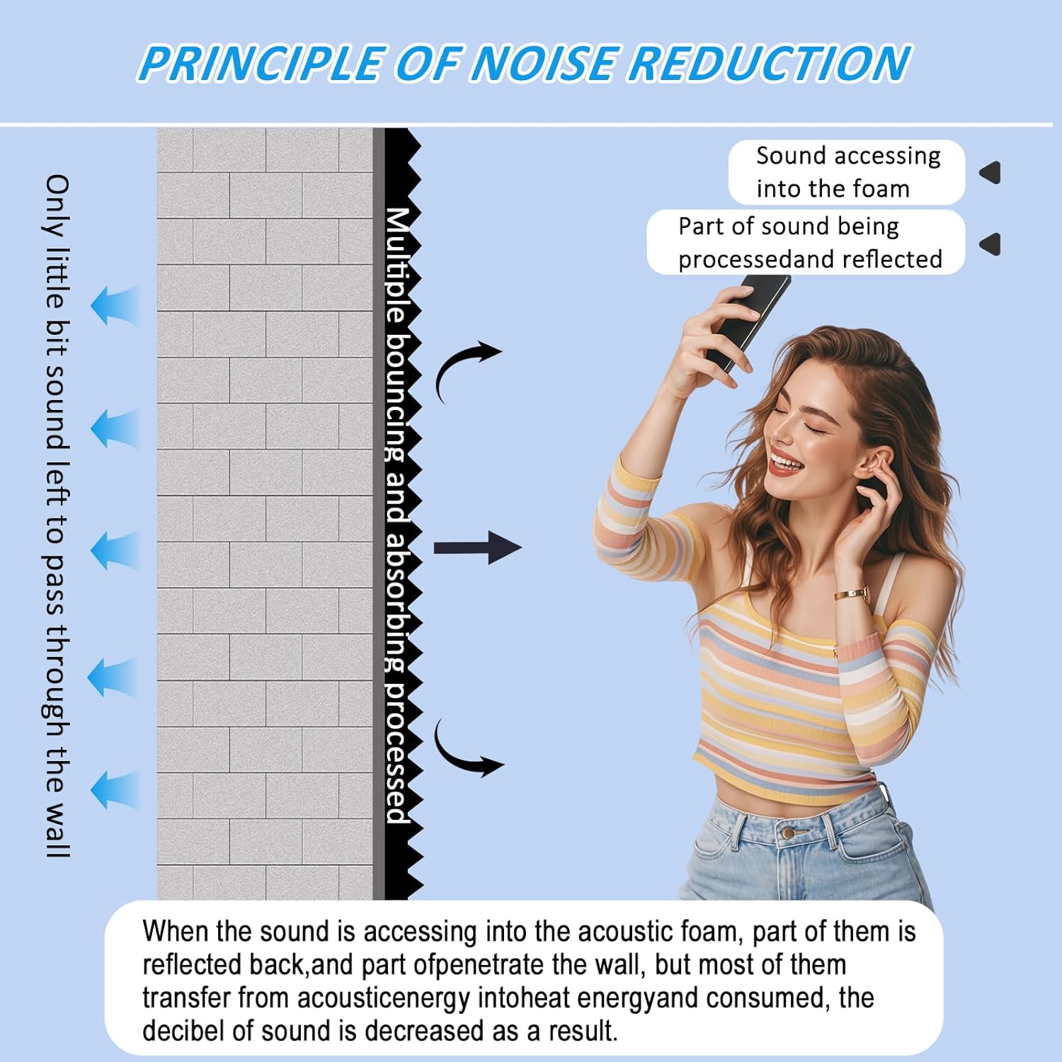 - Excellent Sound Absorption - Made of 48 x 24 x 2 inches acoustic foam, each package contains 2 acoustic foam panels These panels increase the contact area of more sound waves, better sound absorption, can effectively absorb and reduce unwanted echoes and noises in the surrounding area, so that the other sounds are more clearer