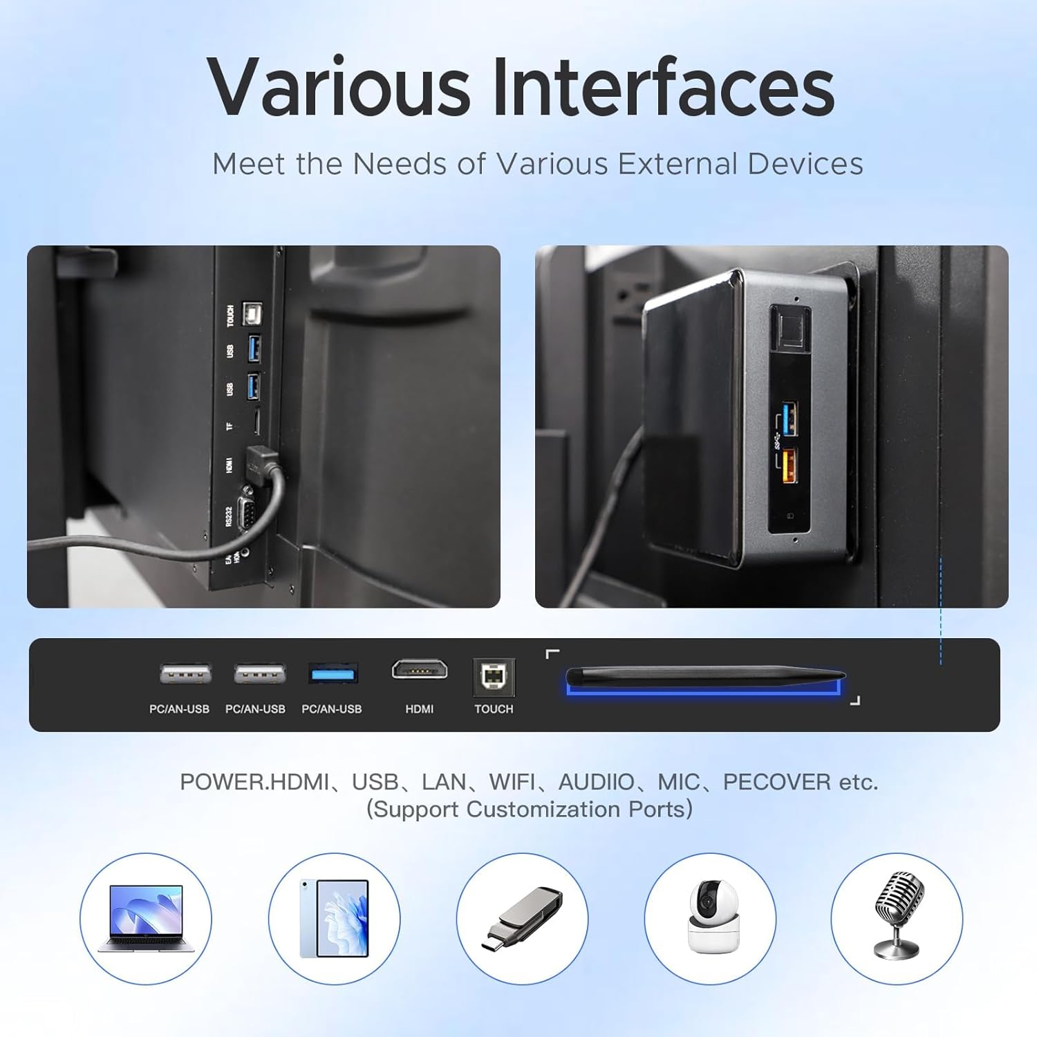 - 【Seamless Information Sharing】: Digital Presentation Electronic Smart WhiteBoard facilitate seamless information sharing by allowing users to wirelessly connect their devices to the board, share content, and collaborate in real-time, enhancing productivity and communication. smart board supports up to 4 users to Wireless screen projection, or by connecting in ports.