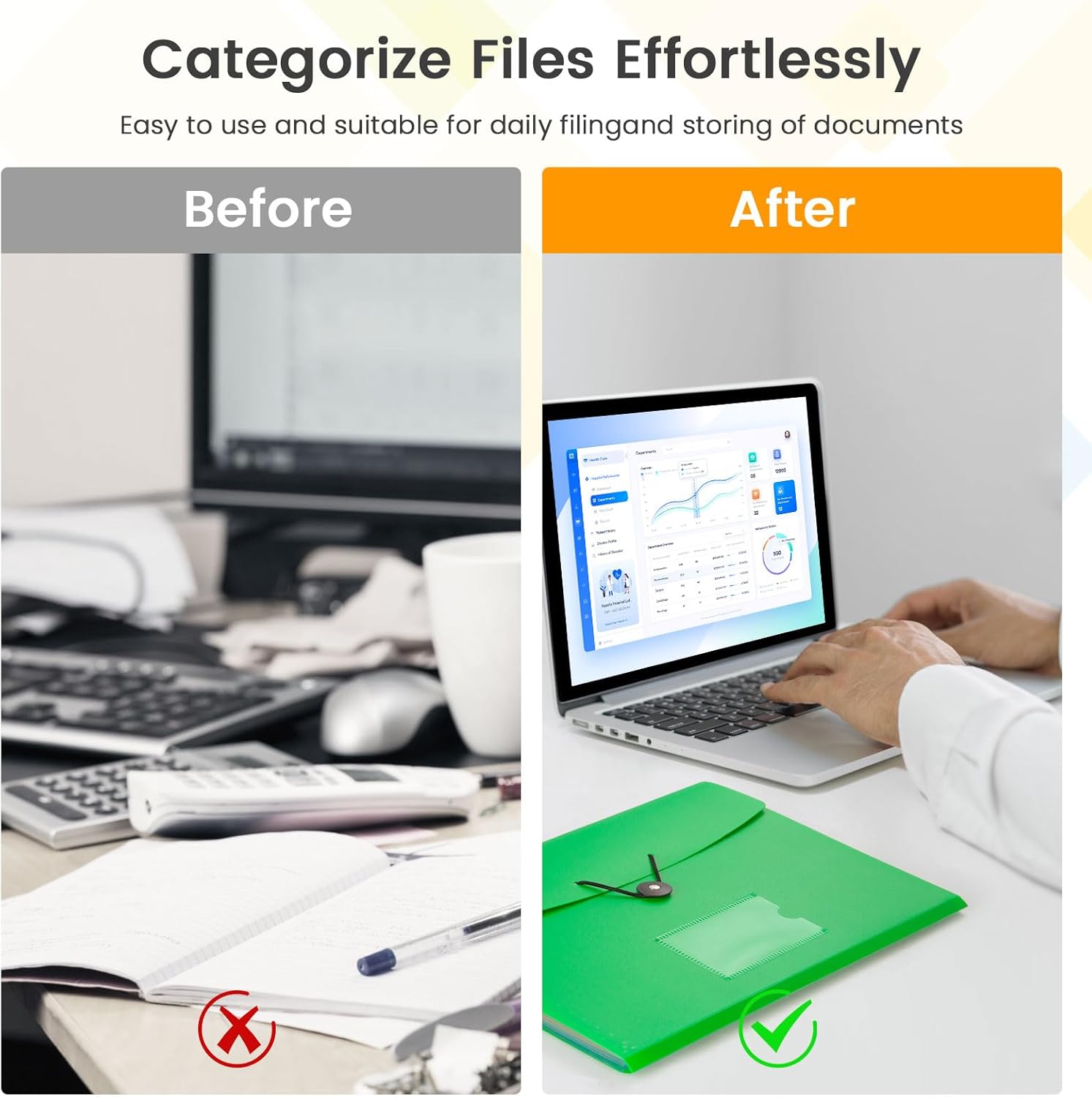 - VERSATILE USAGE: Ideal for storing utility bills, invoices, and more, it's perfect for school, work, or home use. Includes an extra pocket for business cards, enhancing convenience and organization. Stay organized effortlessly with our premium file organizer