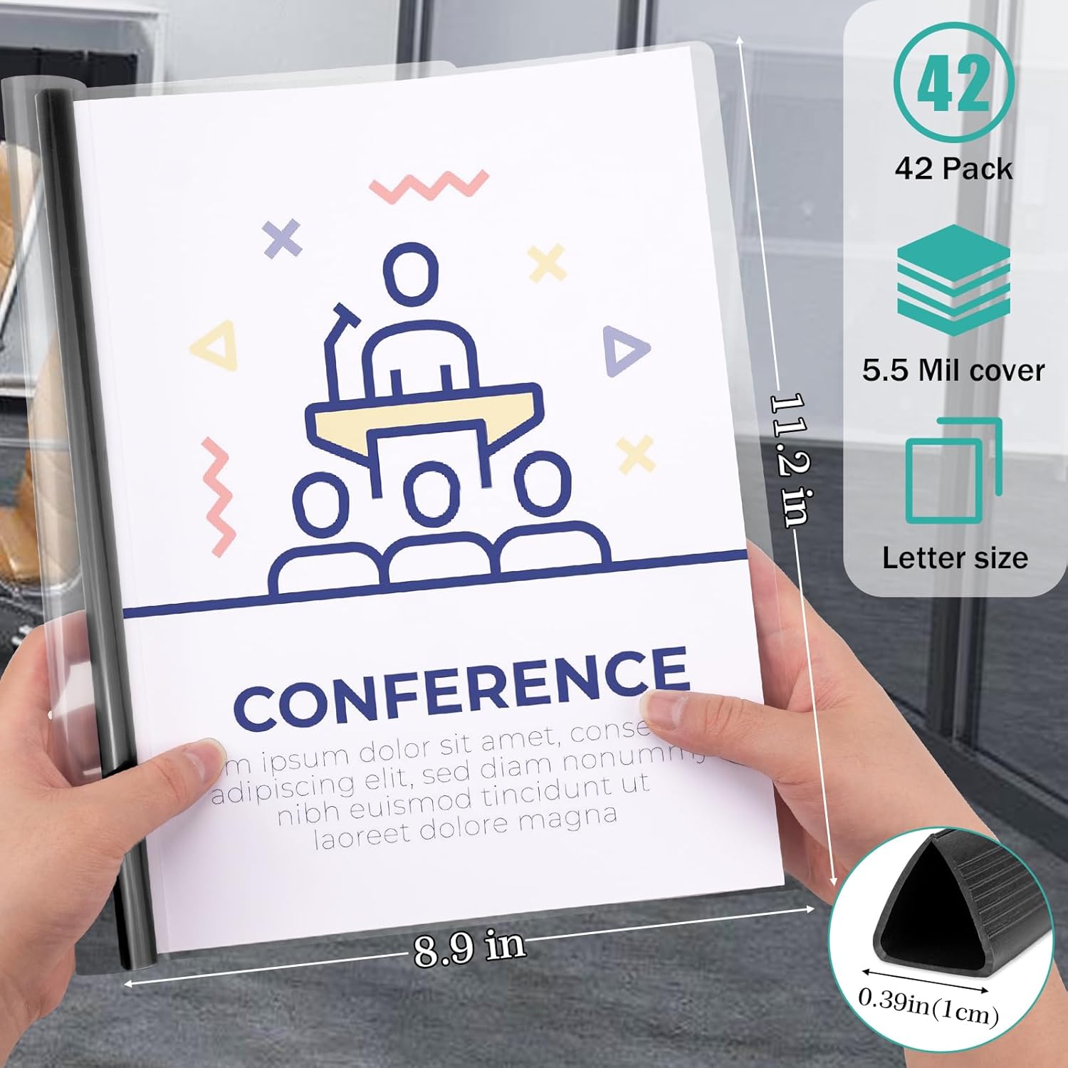 - Usable Size: Designed with precise measurements of 8.9 x11.2 inches, our presentation folders are perfectly sized to accommodate standard paper sizes. The 5.5mil thick transparent cover offers a sturdy yet flexible barrier, while the 1cm wide slide bar can accommodate up to 70 sheets of paper, ensuring ample space for all your notes and materials