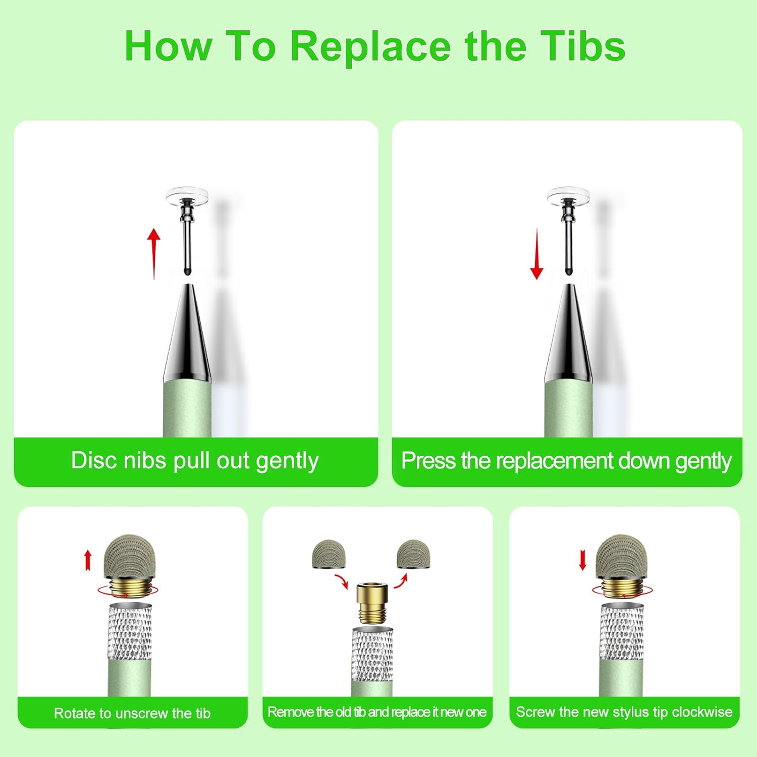 - 【After Service】You will get 3 stylus pen for touchscreen in different colors (green/rose gold/purple),stylus accessories include 2 disc nibs and 2 fiber pen caps, both ends are freely replaceable without tools, you can easily replace them by rotating the end of the fiber pen cap or pulling out the disc nib. You can share the stylus for ipad with your family and friends. When you have problems with the Zhao Cai Jin Bao stylus pen and need help, you can always contact us.