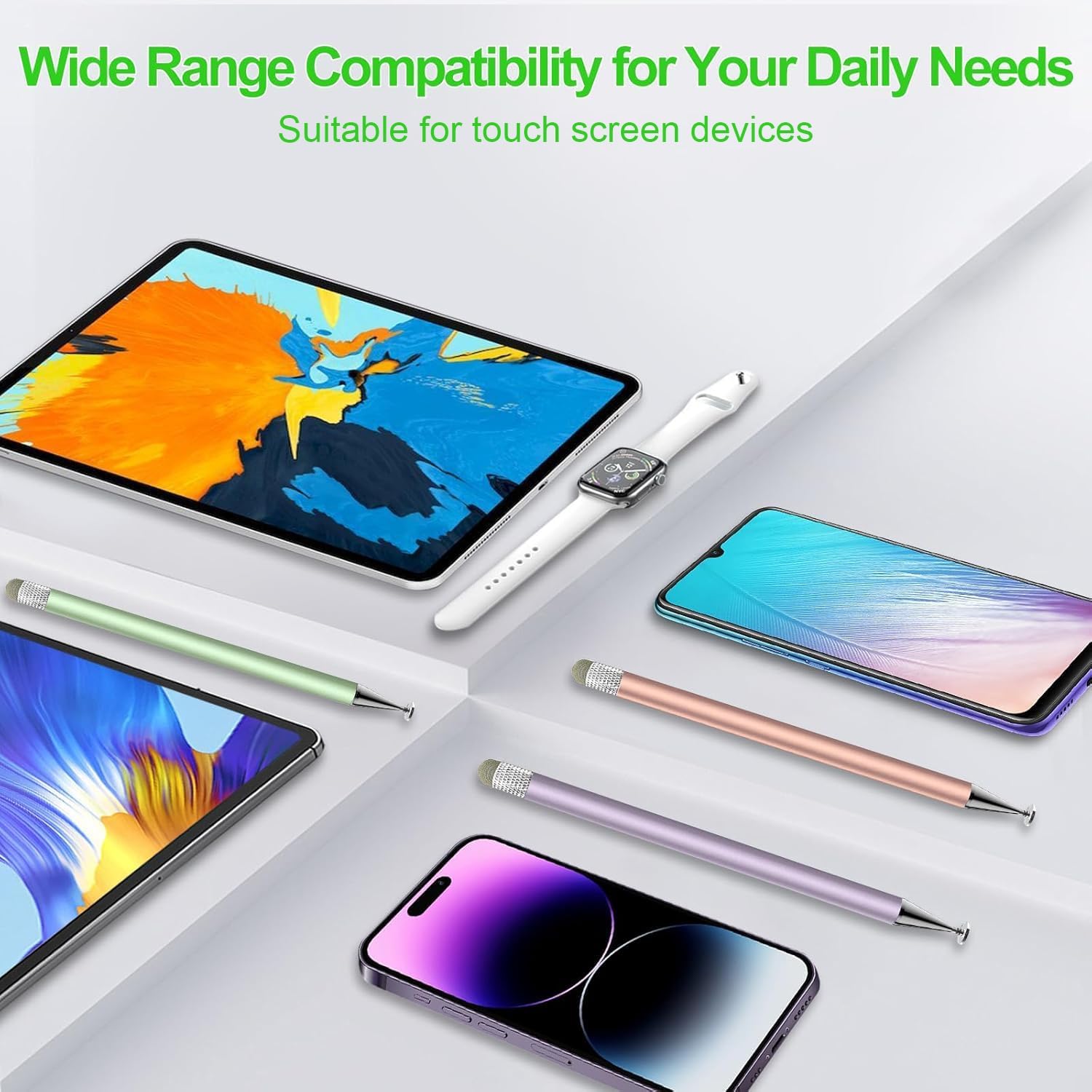 Stylus Pen for Touchscreen,3pcs 2in1 High Precision Sensitivity Stylus, Suitable for iPhone/ipad/Android Stylus for ipad,Compatible with Touch(Green/Purple/Rose Gold + 4Tips)