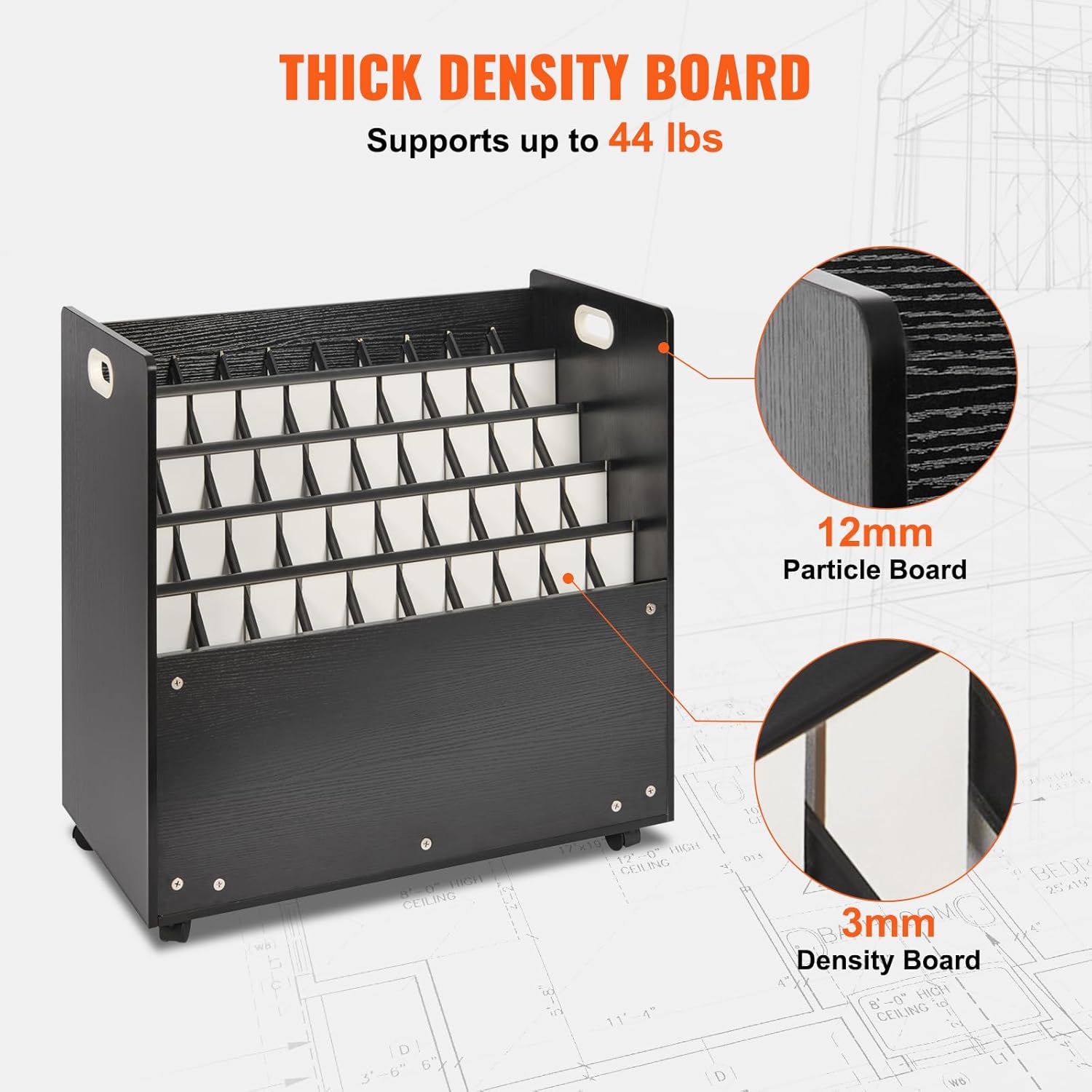 VEVOR Mobile Storage Cart, 50 Slot Wooden Roll File Organizer for Construction Plans, Maps, Posters, Architectural Blueprints - Home, Office, School