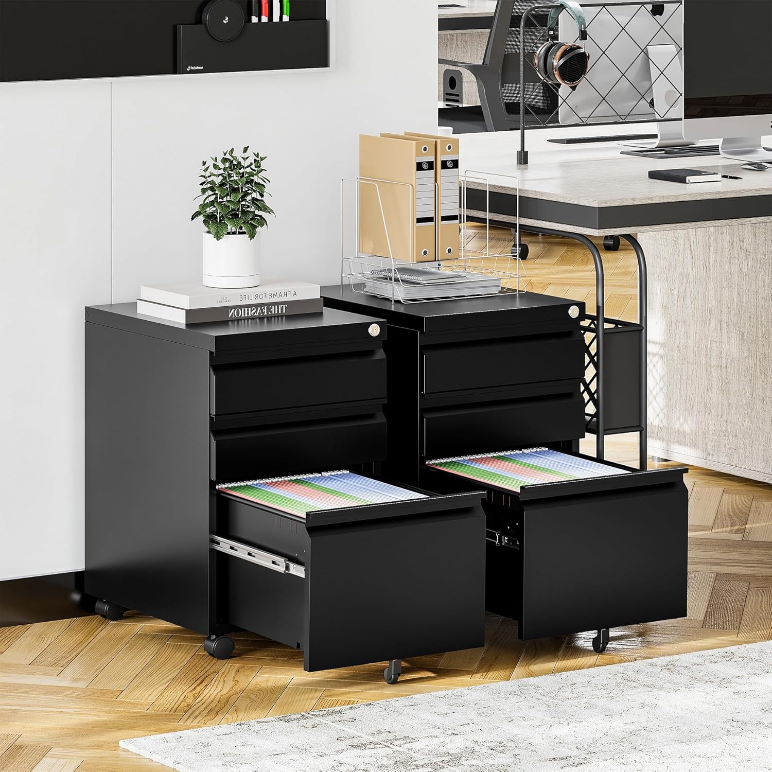 - ✅➤【LOCK AND ANTI-TILT DESIGN FOR HIGHT SECURITY 】: The sturdy file cabinet comes with 2 keys to lock up the top and bottom drawers. And the small wheel in the front that keeps the cabinet from tipping. The rear casters can be moved around and locked. Easy to move around and enough space for your files and keep important Files. Home files fit well in this stable and movable 3-drawer file.