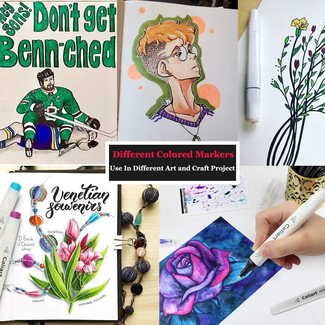 - 🎨 Brush & Fine Double Tip Alcohol Art Markers. Each brush tip marker has a double-ended design, providing great versatility. You can choose the brush tip for sweeping, details, calligraphic strokes or the broad chisel tip for quickly color in large areas. Caliart alcohol brush markers are more durable and do not fray easily.