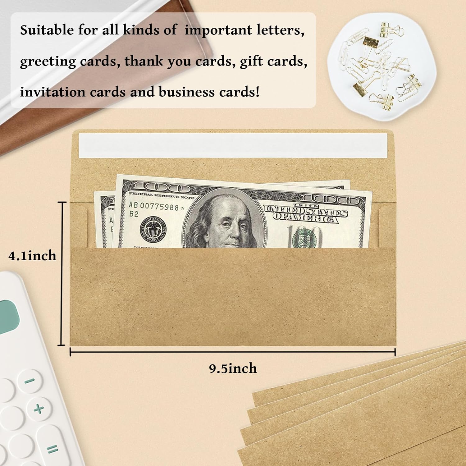 - 【Kraft #10 Business Envelopes】These #10 business envelopes feature a kraft color. The envelopes kit contains 200 pieces 4 1/8 x 9 1/2 Inches kraft envelopes, perfect for your office or home purposes