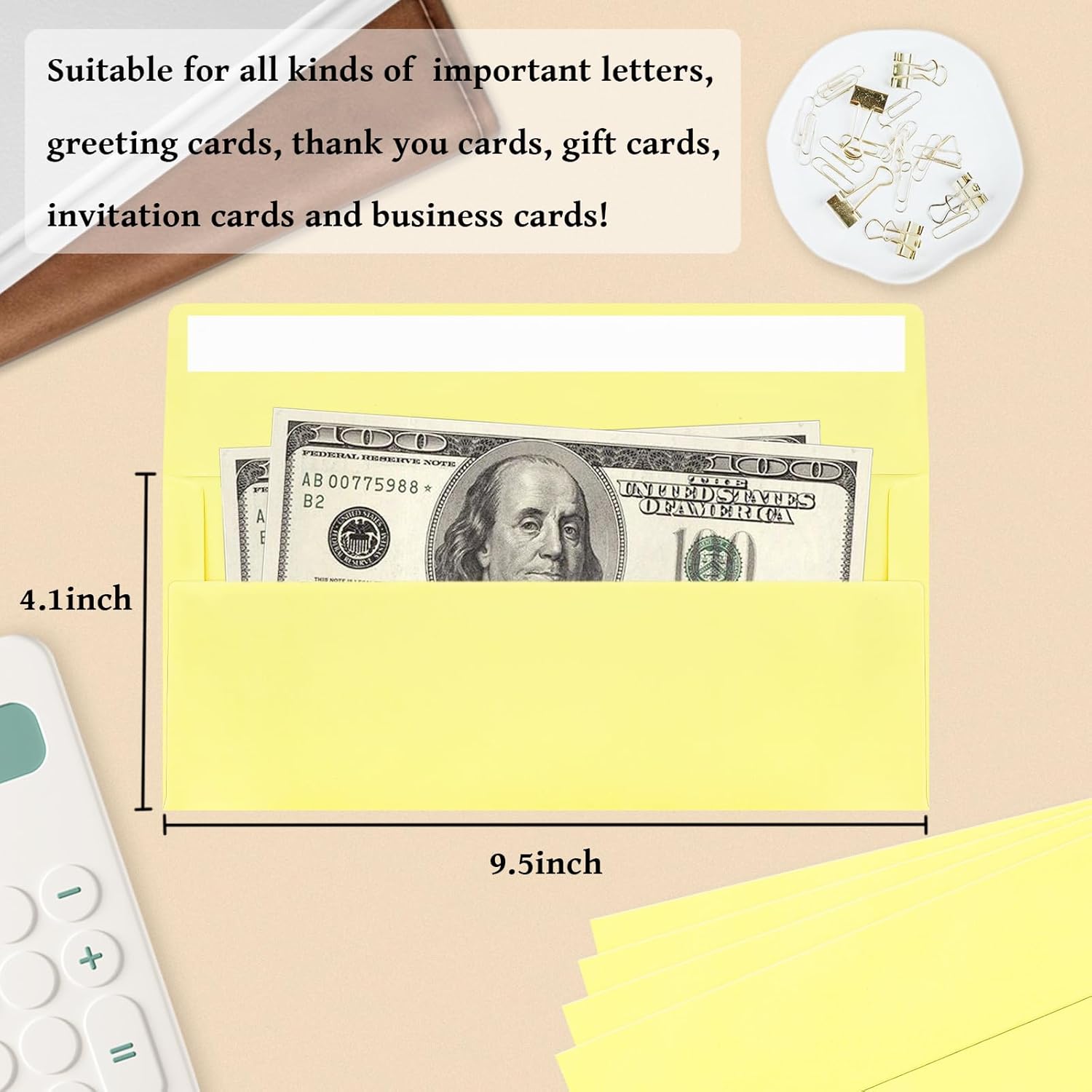 - 【Light Yellow #10 Business Envelopes】These #10 business envelopes feature a light yellow color. The envelopes kit contains 200 pieces 4 1/8 x 9 1/2 Inches light yellow envelopes, perfect for your office or home purposes