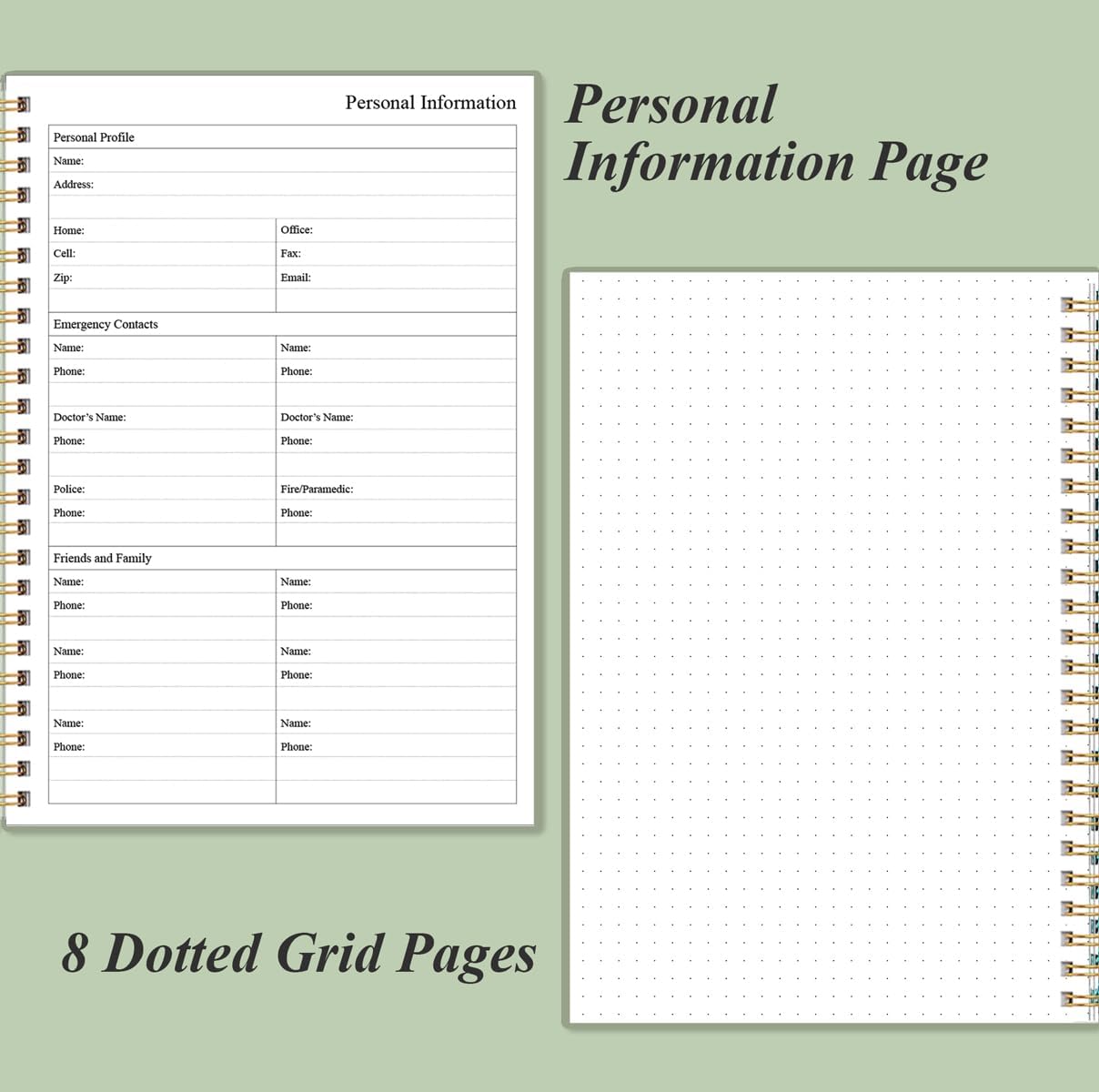 - A5 SIZE - This undated daily organizer size of 8.5 x 5.8 inch, perfect size to fit in your bag.1 quick reference page, contact pages, important dates page, and 75sheet (150 page) daily plan & notes,8 dotted grid pages, Undated appointment planner makes it easy for you to start the planner at any time.