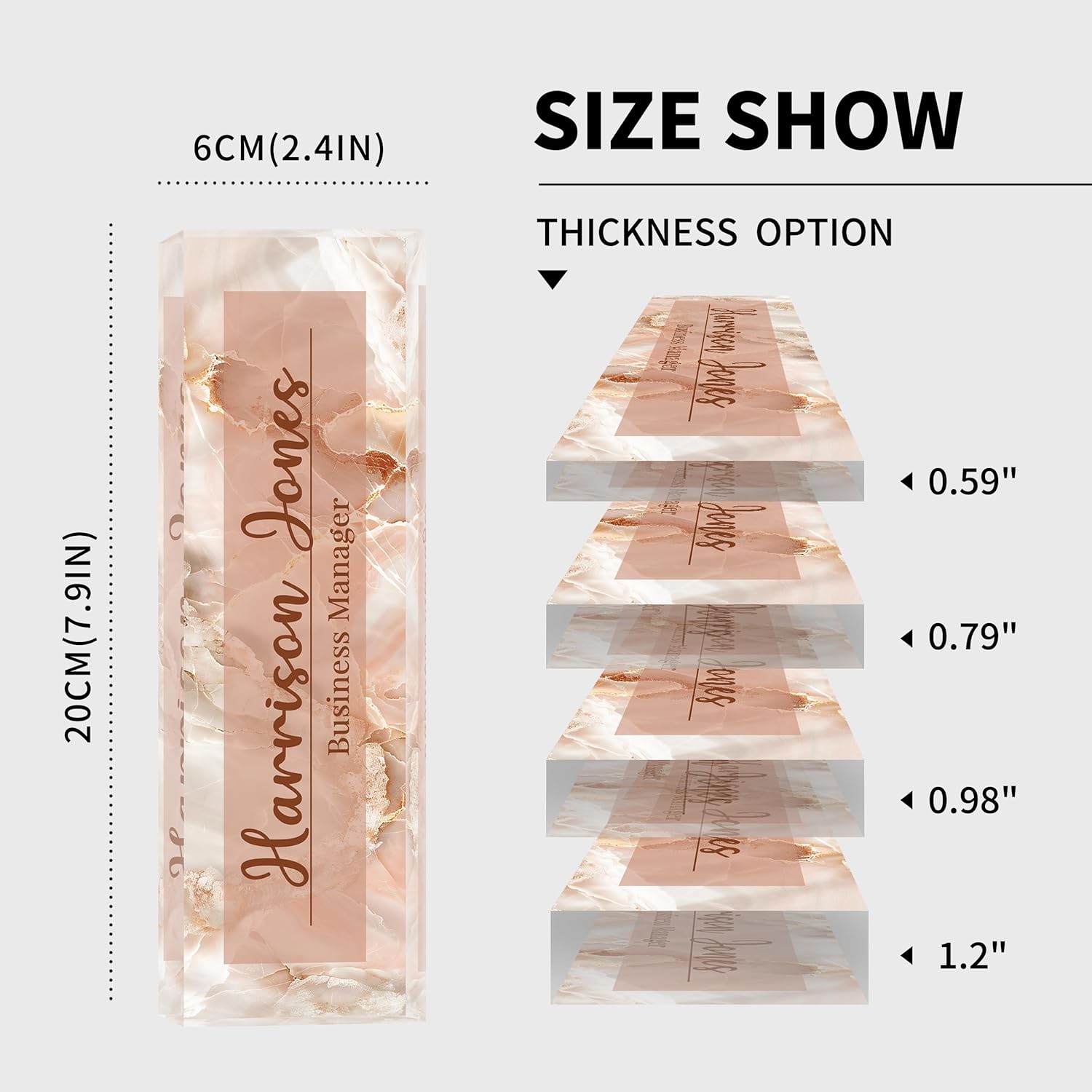 - 【High-Quality Acrylic Material】Our factory uses high-quality solid acrylic blocks to make name plates, and uses the latest high-definition UV printing machine to ensure that the content on the acrylic name plate is clear and not easily faded. So it will stand out on any desk, fully reflecting your professional ethics.