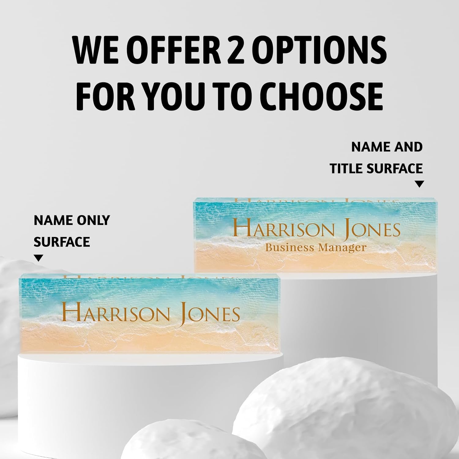 Personalized Name Plate for Desk, Custom Desk Name Plate, Acrylic Name Plate Office Desk Accessories, Personalized Office Gifts for Coworkers Teachers, Employee Appreciation Gifts (B-Beach)