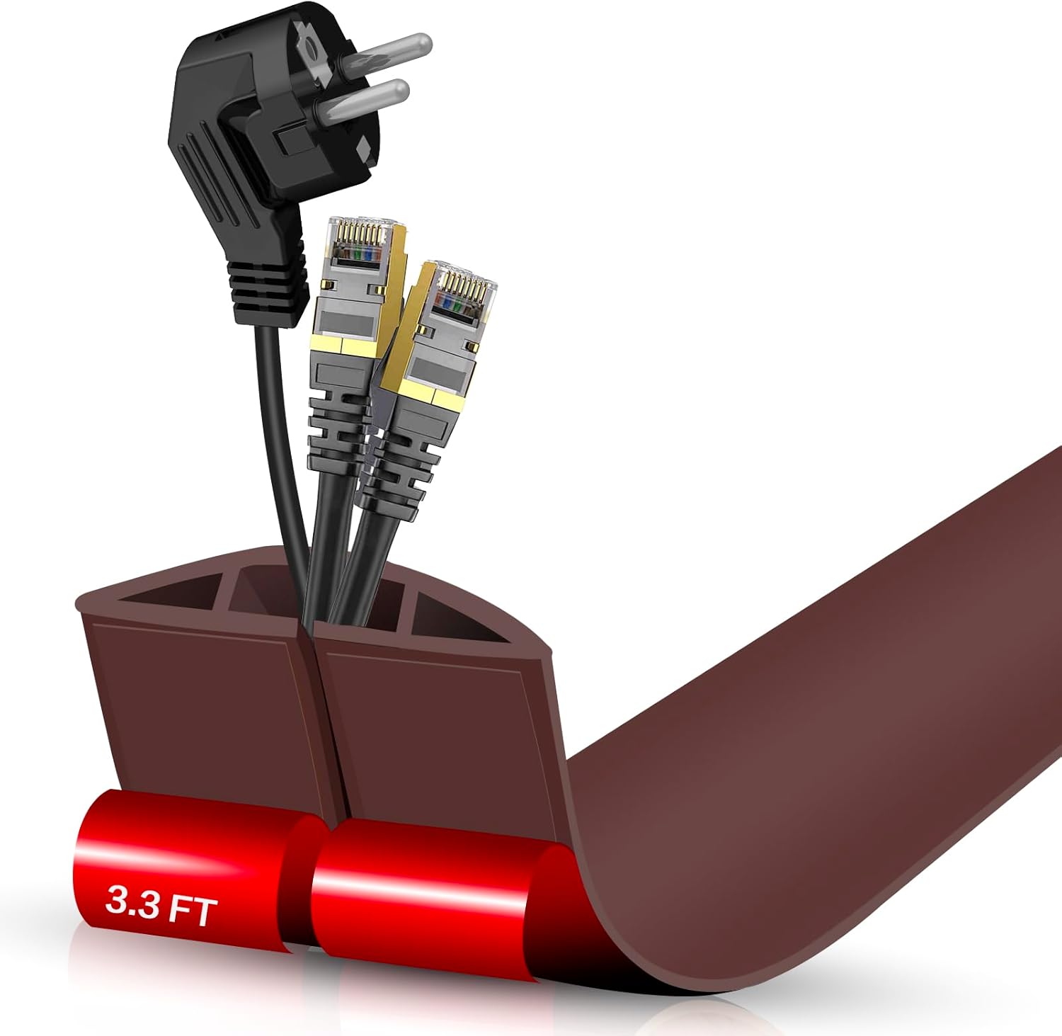 Floor Cord Cover Self Adhesive Cord Hider,3.3FT Cable Management, Extension Strip Protector for Wires, Prevent Cable Trips for Offices, Gyms, Exhibitions Cavity:0.51"(W) x 0.3"(H) Coffee