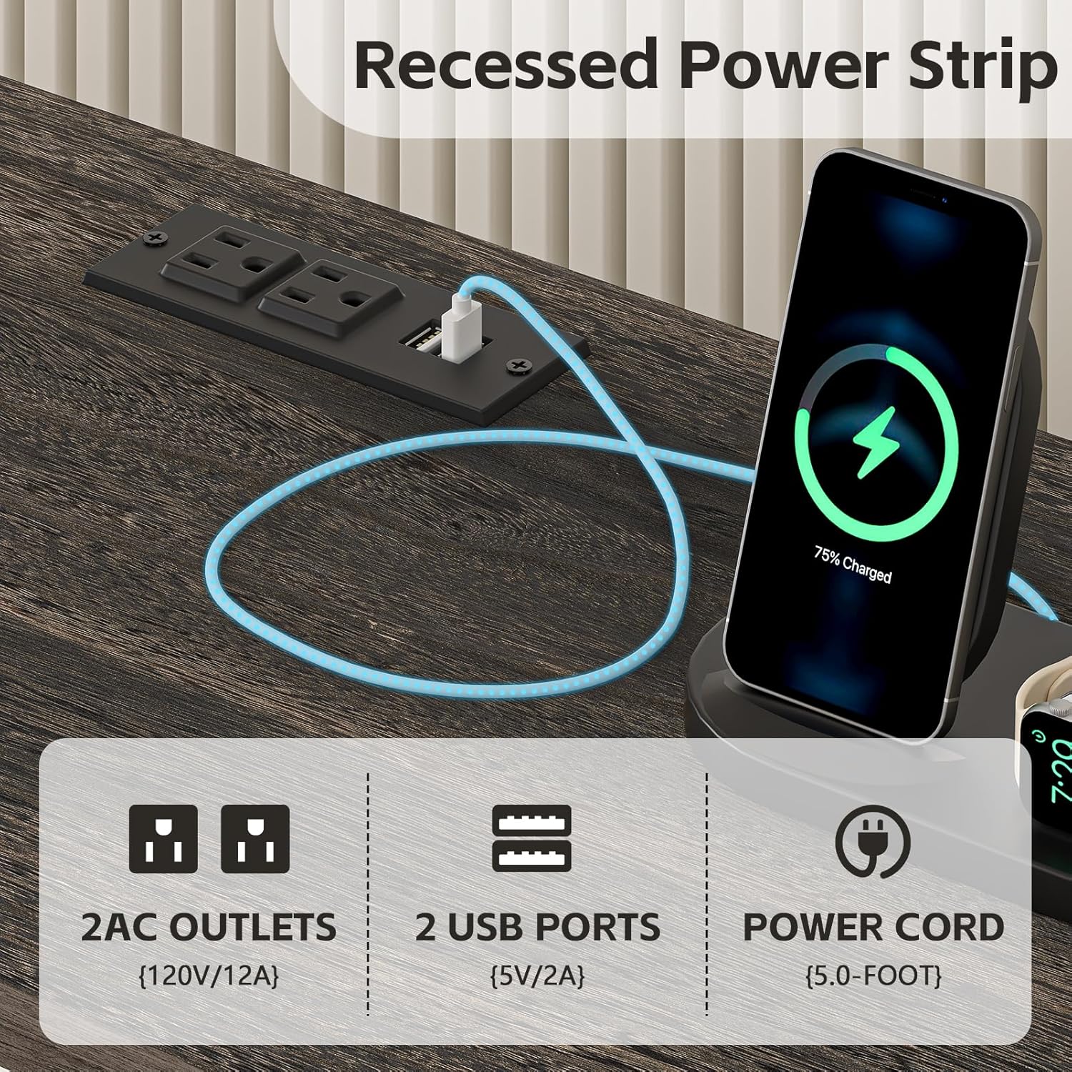 TVU Farmhouse 3 Drawer File Cabinet with Charging Station, Solid Lateral Filing Cabinet for Home Office, Office Organizer for Legal/Letter/A4/Folders File - Beside Desk Printer Stand