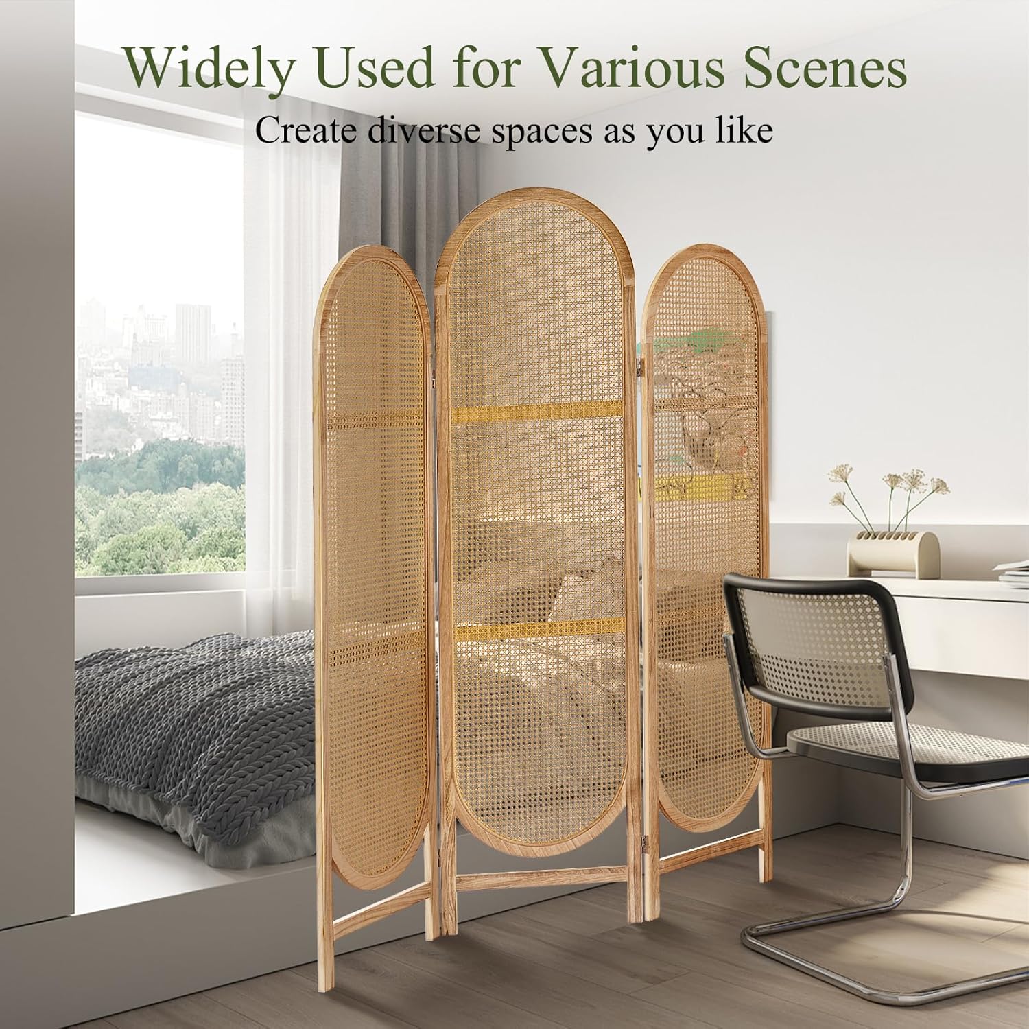 - Perfect Space Separation - This room divider can help you better protect your privacy by simply gently unfolding the 3 panel room divider to divide the space. The unique three-panel design also fits the daily use of most homes. Whether in the bedroom, dining room, balcony, or for various commercial activities, it creates a harmonious and elegant atmosphere!