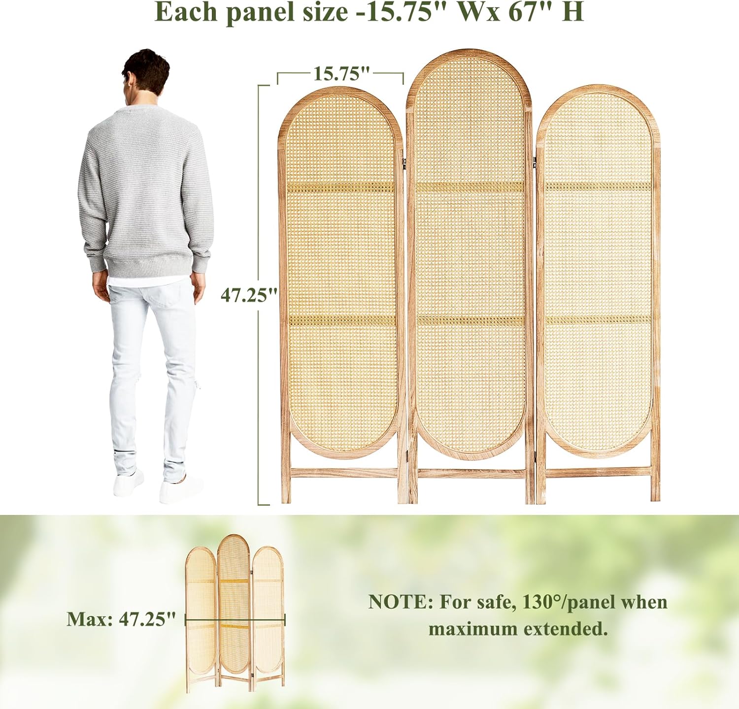 - Pure Handmade Rattan Weaving - Wood room divider is hand-woven by hand, selecting the finest rattan, which is made more flexible through multiple procedures, and then hand-woven by hand. Therefore, the rattan room divider looks very beautiful and atmospheric, and the rattan wall divider is more breathable and light-permeable than other materials