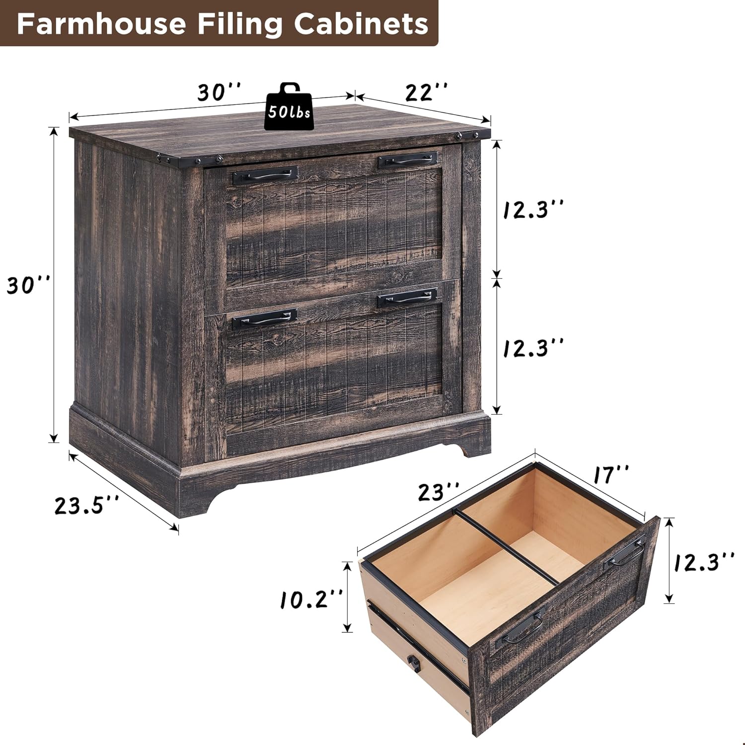 - Sturdy Construction: The filing cabinets are produced from high-quality engineered wood and are built to endure daily application and provide lasting storage. Designed with the customer in the forefront of the mind, this 2-drawer farmhouse file cabinet combines functionality and aesthetics. Tabletop can hold up to 50lbs.