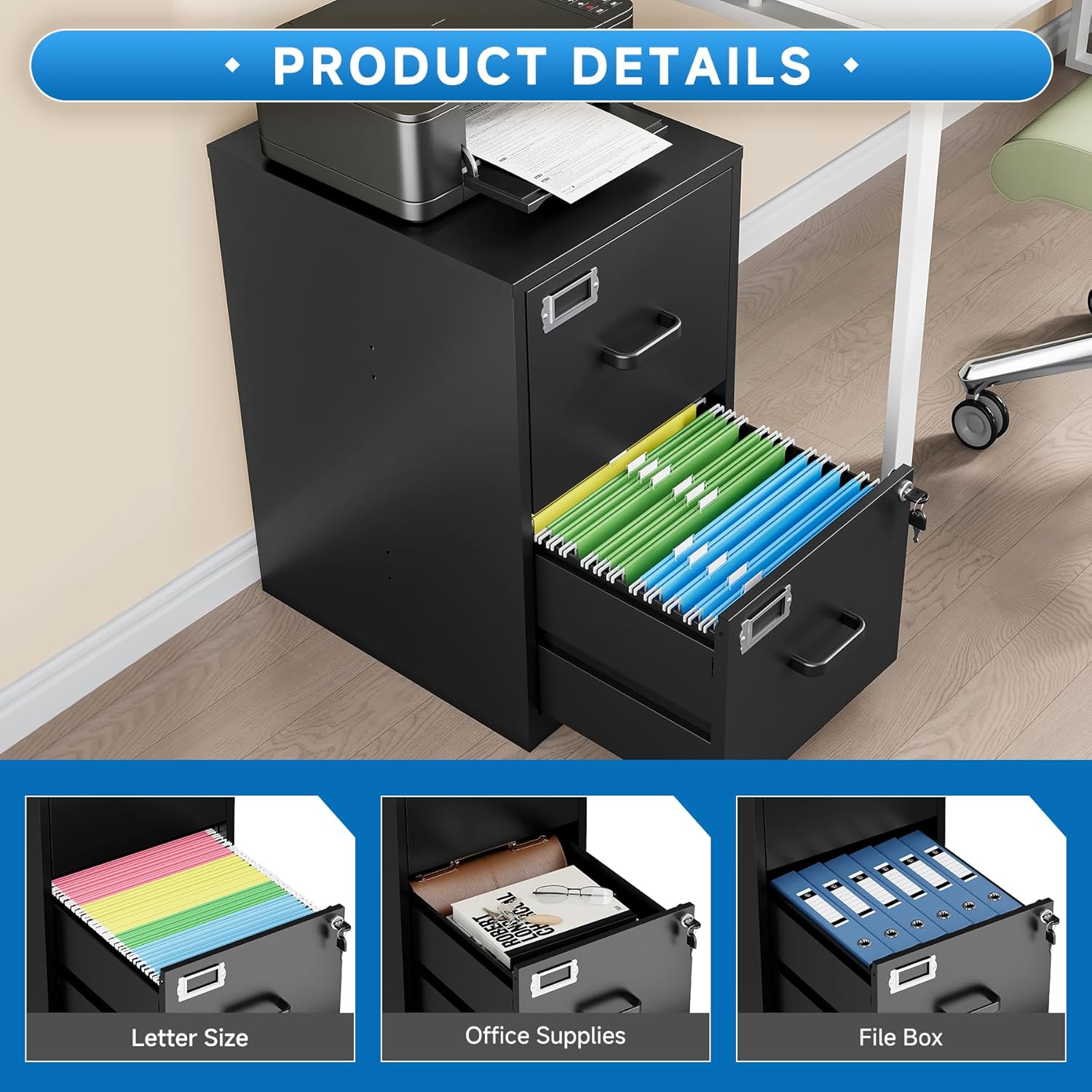 2 Drawer File Cabinet with Lock Vertical Filing Storage Cabinet Office Home Steel Vertical File Cabinets for Letter Size File Cabinet Locked,Assembly Required