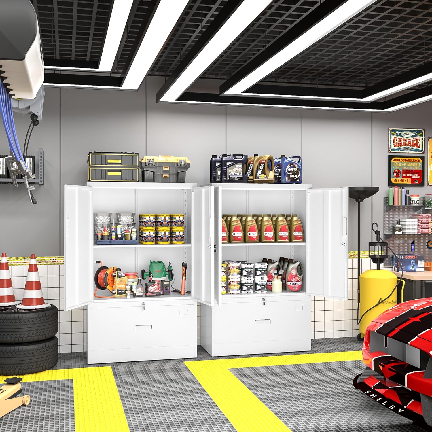 - [Anti-tipping Design]:Greenvelly metal storage cabinet has two holes in it, which is our anti-tipping design. In our product package we provide expansion screws, you could measure the position you need in advance to install, make it more stable.This metal storage suitable for using in home offices, garages, utility rooms to store documents, tools and other items.