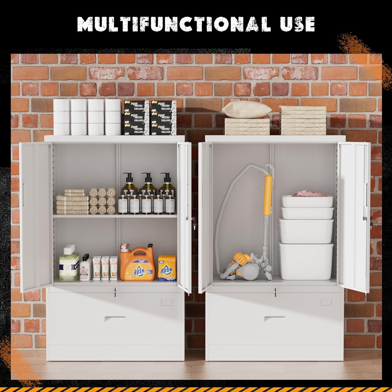 - [Easy&Fast Assembled]:Greenvelly is a company of specialized in the metal storage cabinet.Each metal storage cabinet provides paper and video about Installation instructions. Even if you don’t have any DIY experience, you could easily assemble it.Besides, we are willing to solve your questions about the products.
