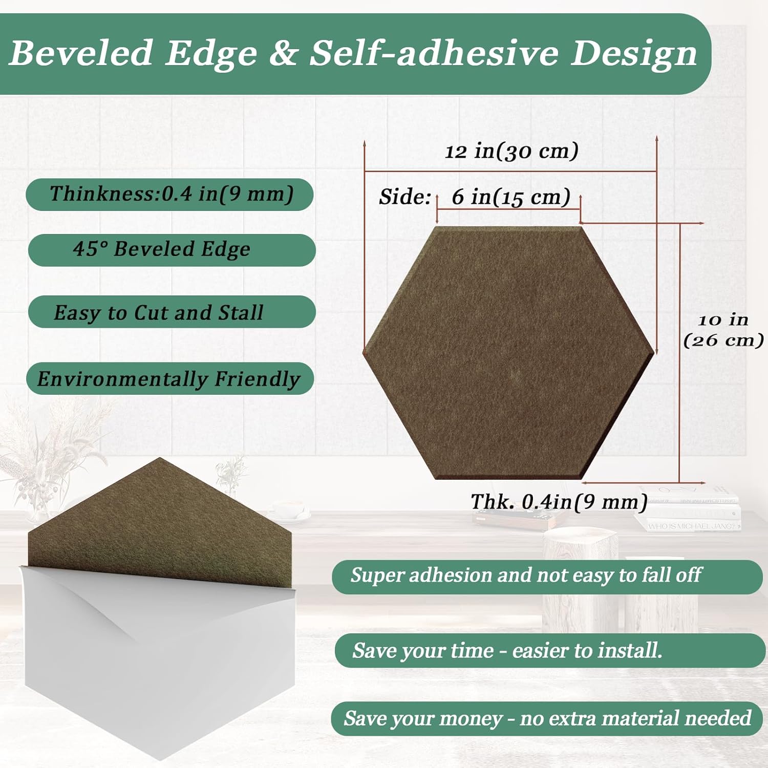 Hexagonal Acoustic Panels-12 Pack High-Density Sound Absorbing Panels 12"X10"X0.4" for Enhanced Noise Reduction, DIY Design, Idea for Studios, Offices, and Home Theaters(Coffee Brown)