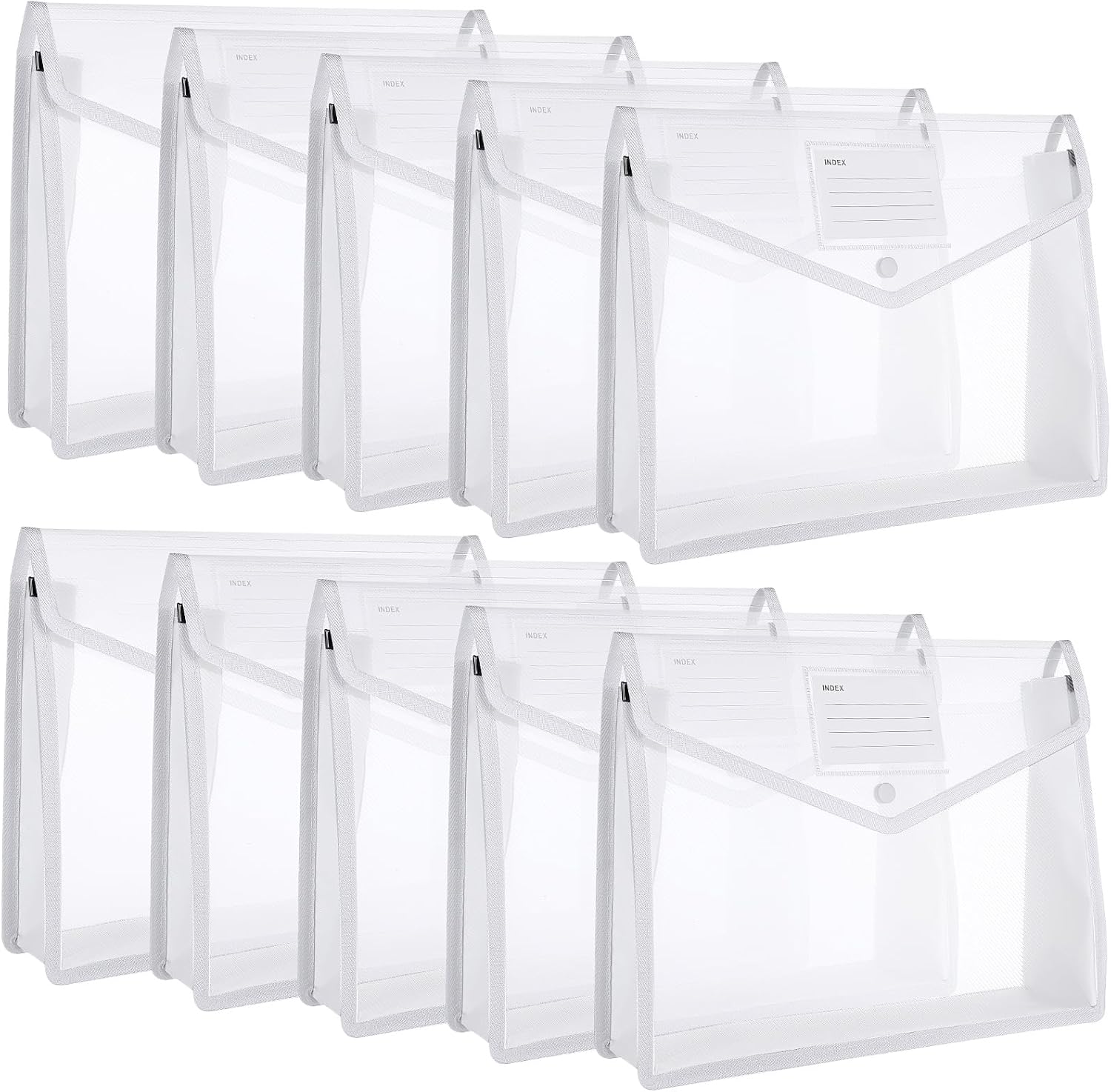 10 Pieces Plastic File Folders Envelope Expanding File Wallet Organizer Documents Folder with Snap Closure and Pocket, A4 Size Waterproof Transparent Pouch(White,Horizontal)