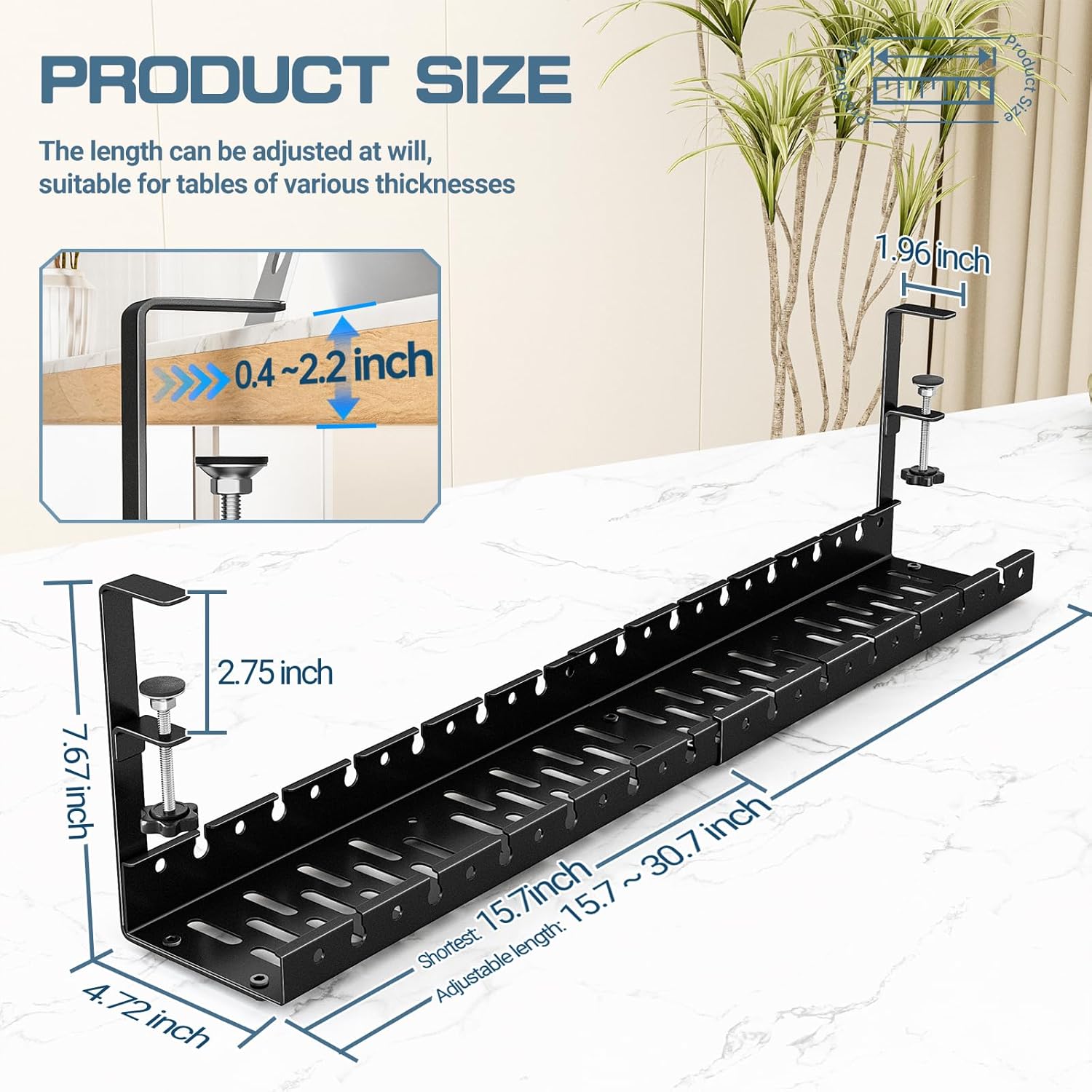 Shikha Under Desk Cable Tray, 15.7"-30.7" Retractable Under Desk Cable Management, No Drilling Cord Organizer with Clamp, Wire Management for Home Office -Black
