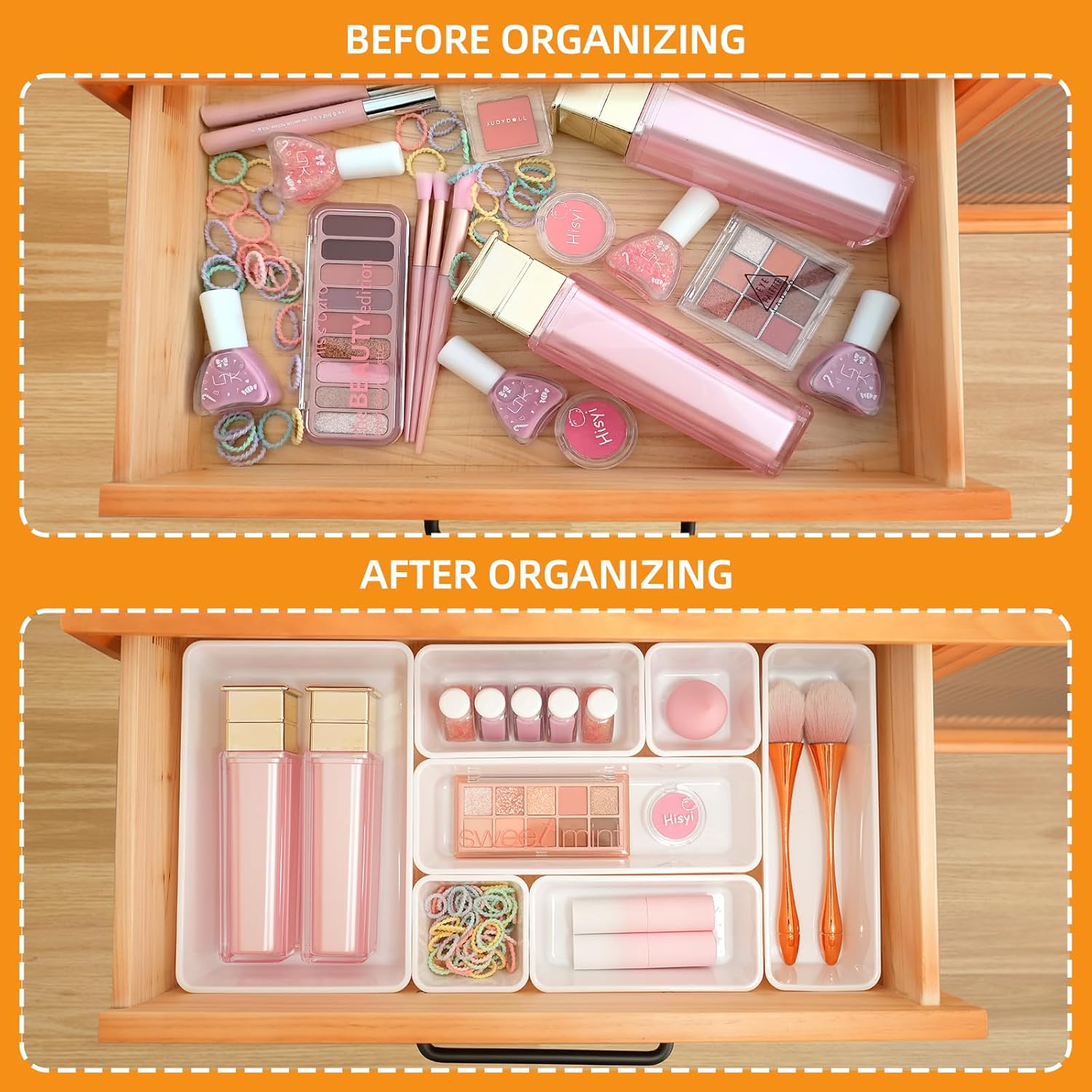 - ăEASY TO CLEANă Our acrylic drawer organizer is easy to wipe clean with a damp cloth, convenient for you to use it in your daily life and make your room look more beautiful and organized.
