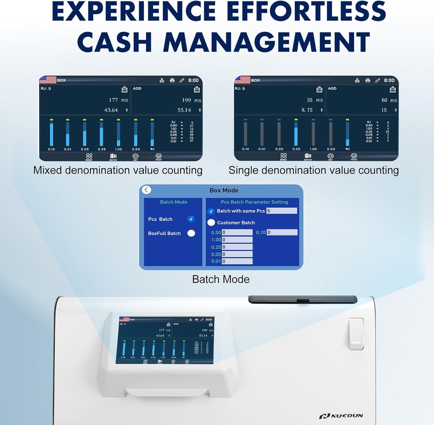 - Monitor your counting progress with ease thanks to the 7-inch touch screen display, which reports the total value and total number of coins counted, and records the value and number of coins for each denomination